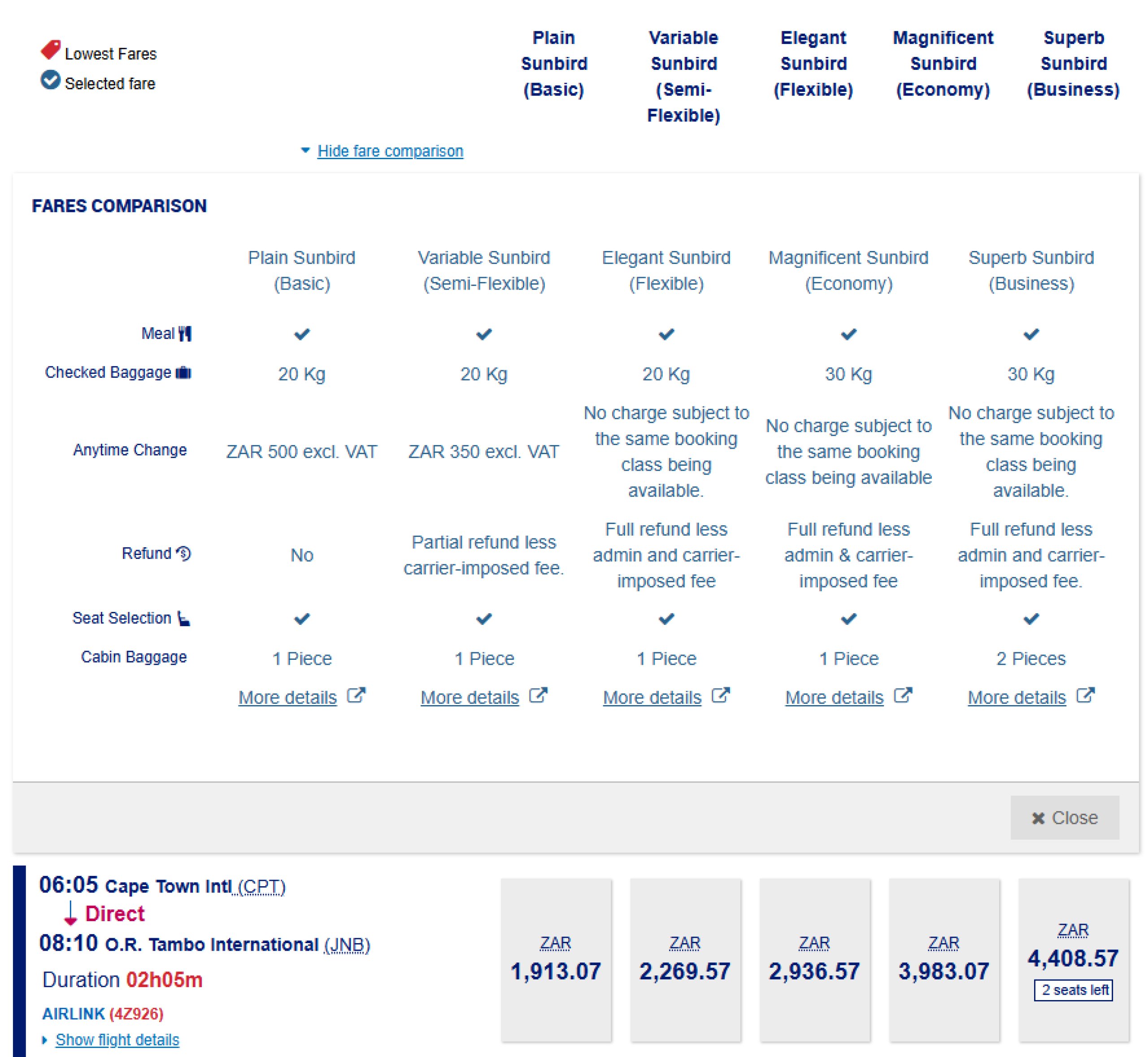 Тъй като по много маршрути Airlink се конкурира с други авиокомпании, струва си да сравните цените чрез сравнителни услуги за полети.