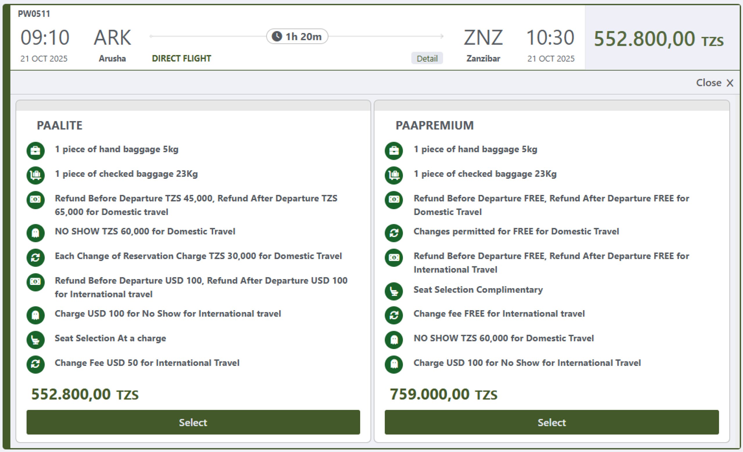 Тъй като по много маршрути в Танзания Precision Air се конкурира с други авиокомпании, струва си да сравните цените чрез сравнителни услуги за полети.