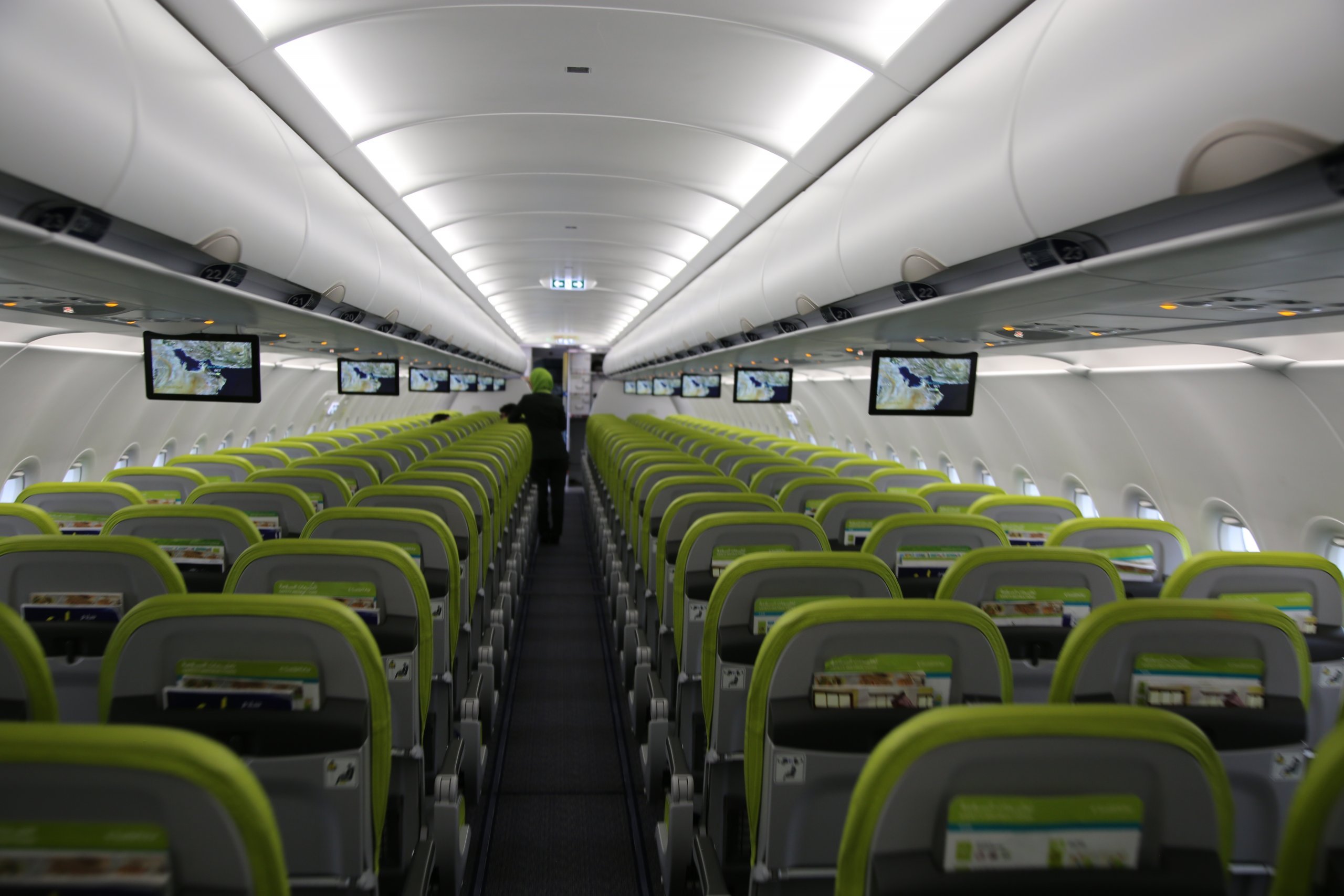 Седалките не разполагат с индивидуални монитори, а по време на полета има само няколко общи екрана, на които се прожектира маршрутът на полета.