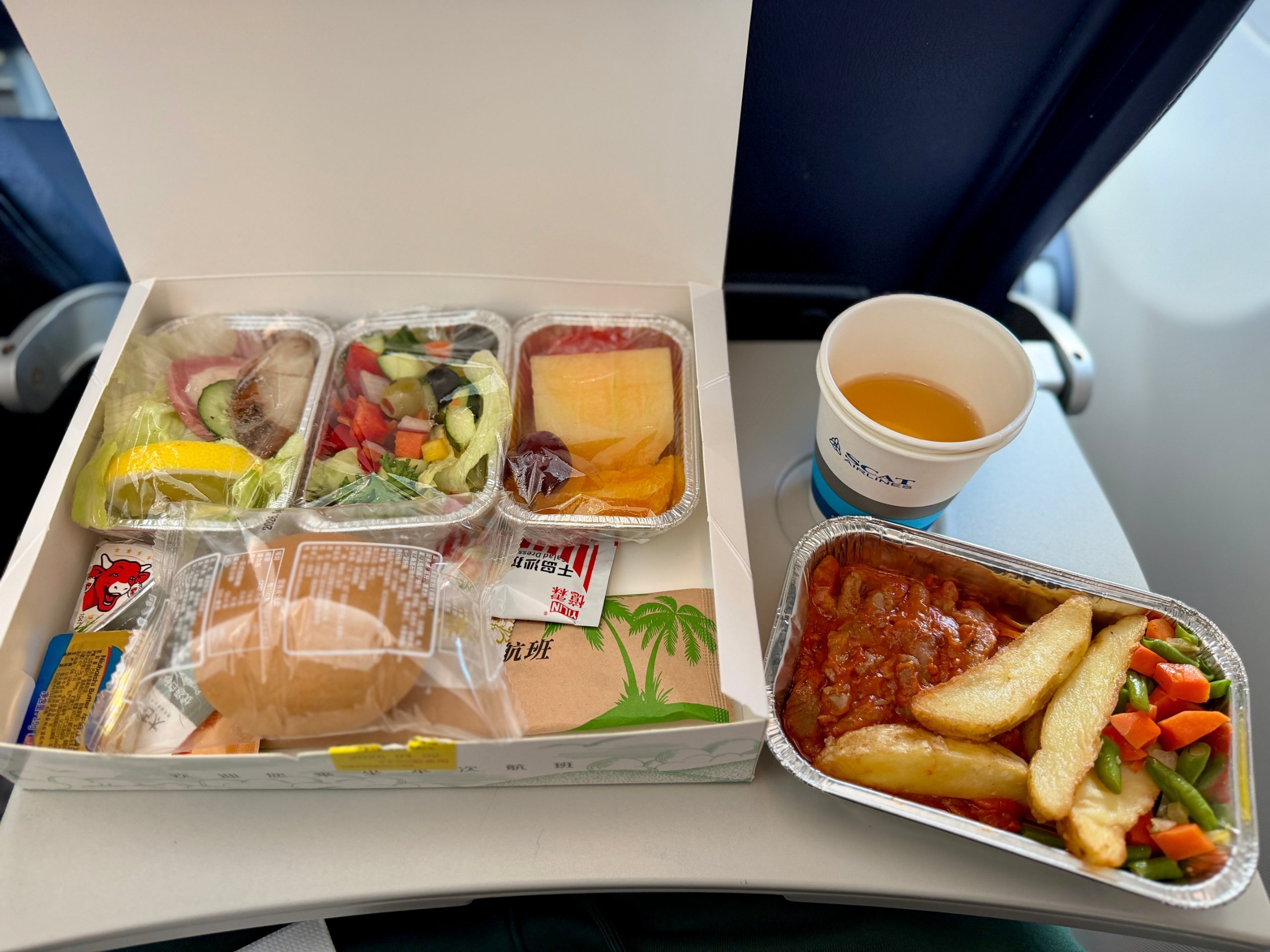 При полети с продължителност над 2 часа ще получите избор от две безплатни топли ястия - обикновено пилешко или говеждо.