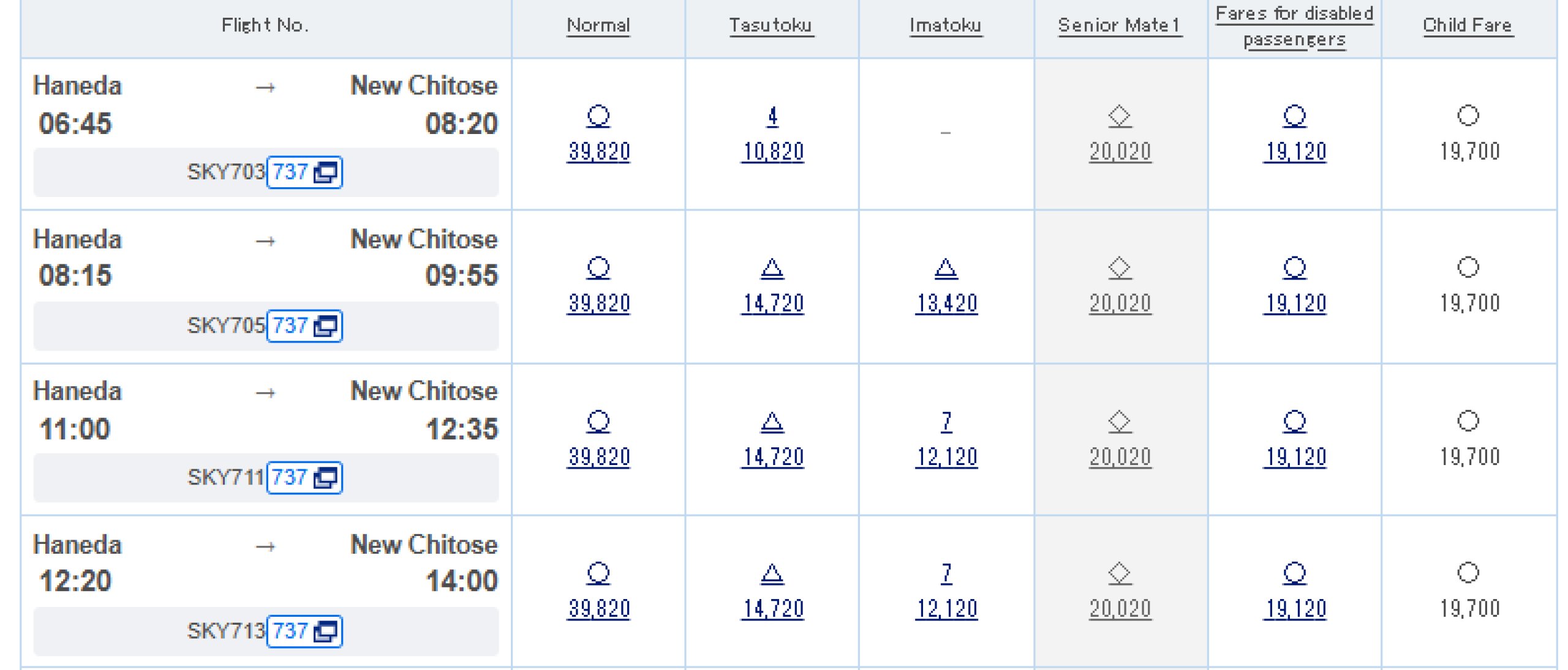 Полетите обикновено се продават на официалния уебсайт skymark.co.jp.