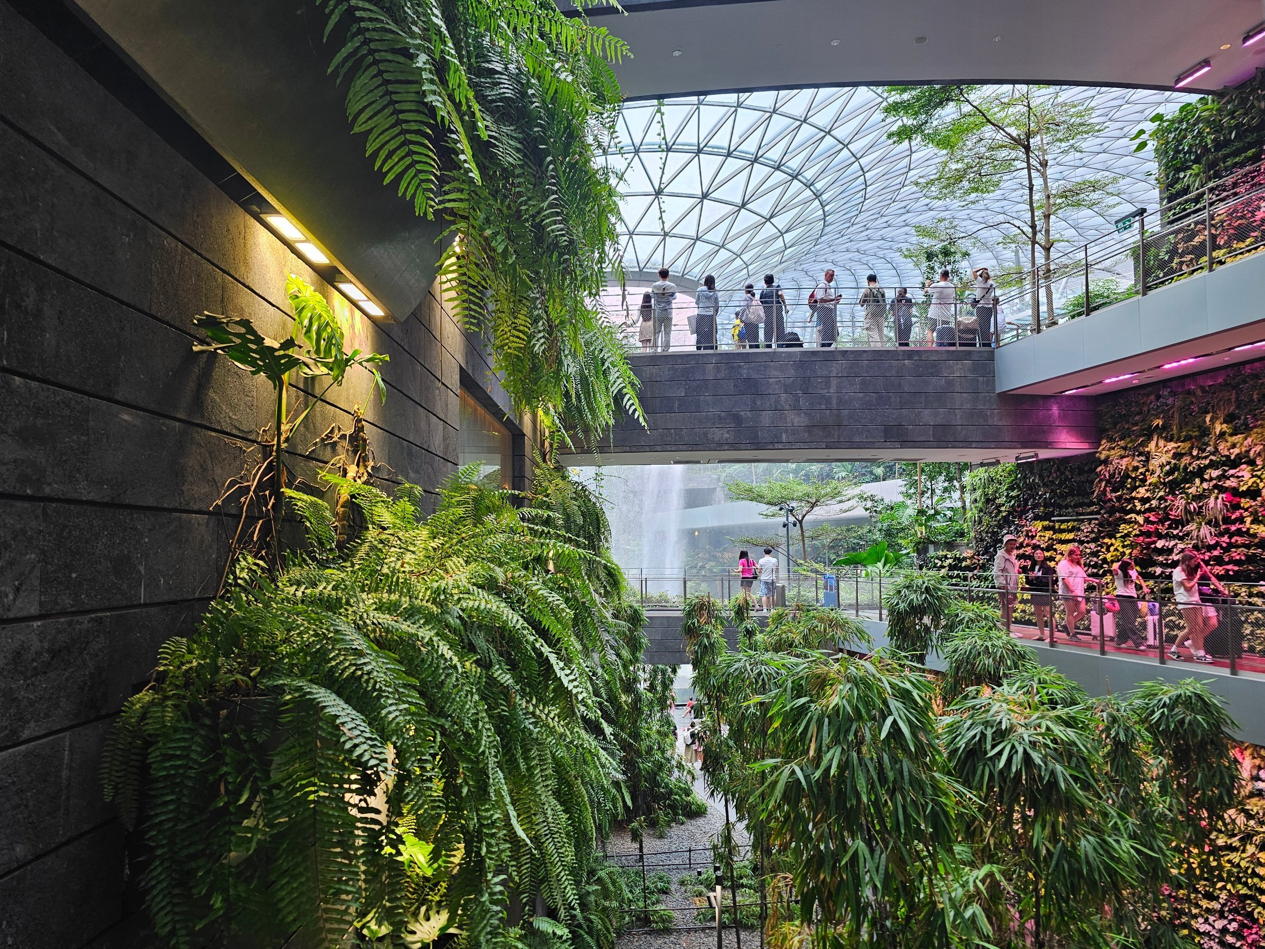 Водопадът е огромен (с размери 40 метра), разположен е в средата на стъклен комплекс и се вижда от няколко етажа.