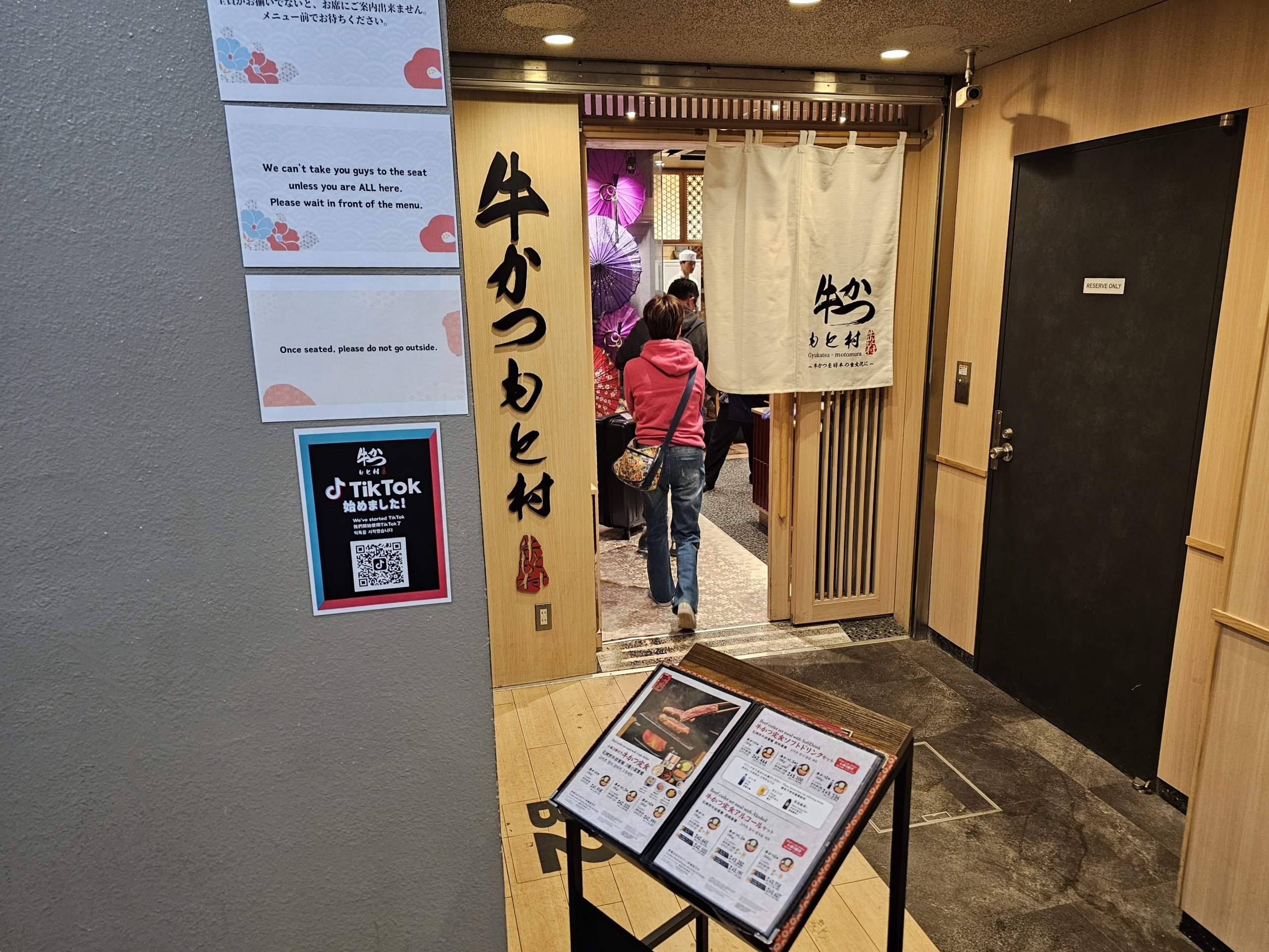 В Google maps намирам малък ресторант, наречен Gyukatsu motomura, с чудесни отзиви, само на няколко минути пеша от гара Шинджуку.