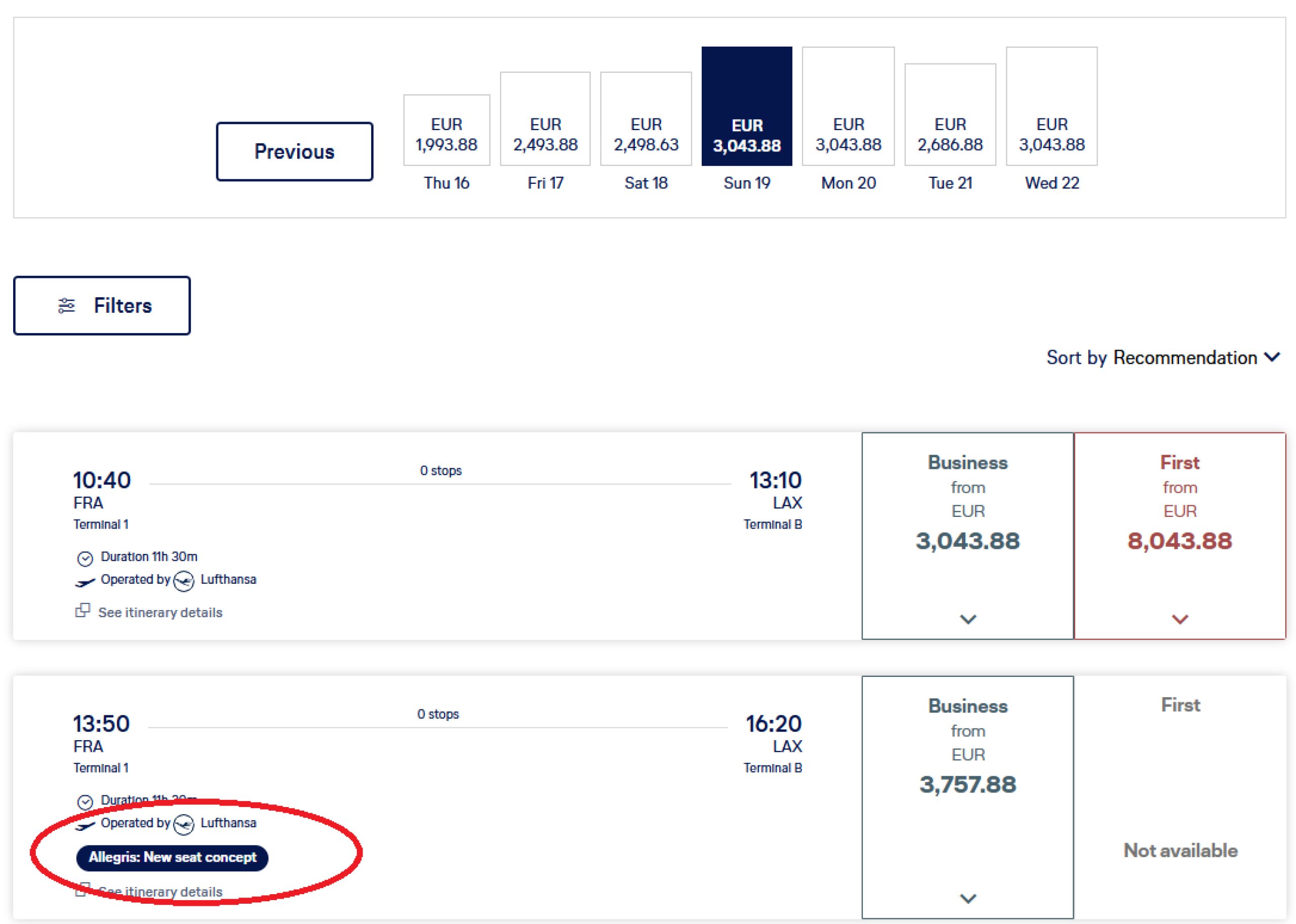 Винаги е важно да изберете конкретен номер на полета. По някои маршрути (например Франкфурт - Лос Анджелис) има няколко полета на ден, но само един от тях е оборудван със седалки Allegris.