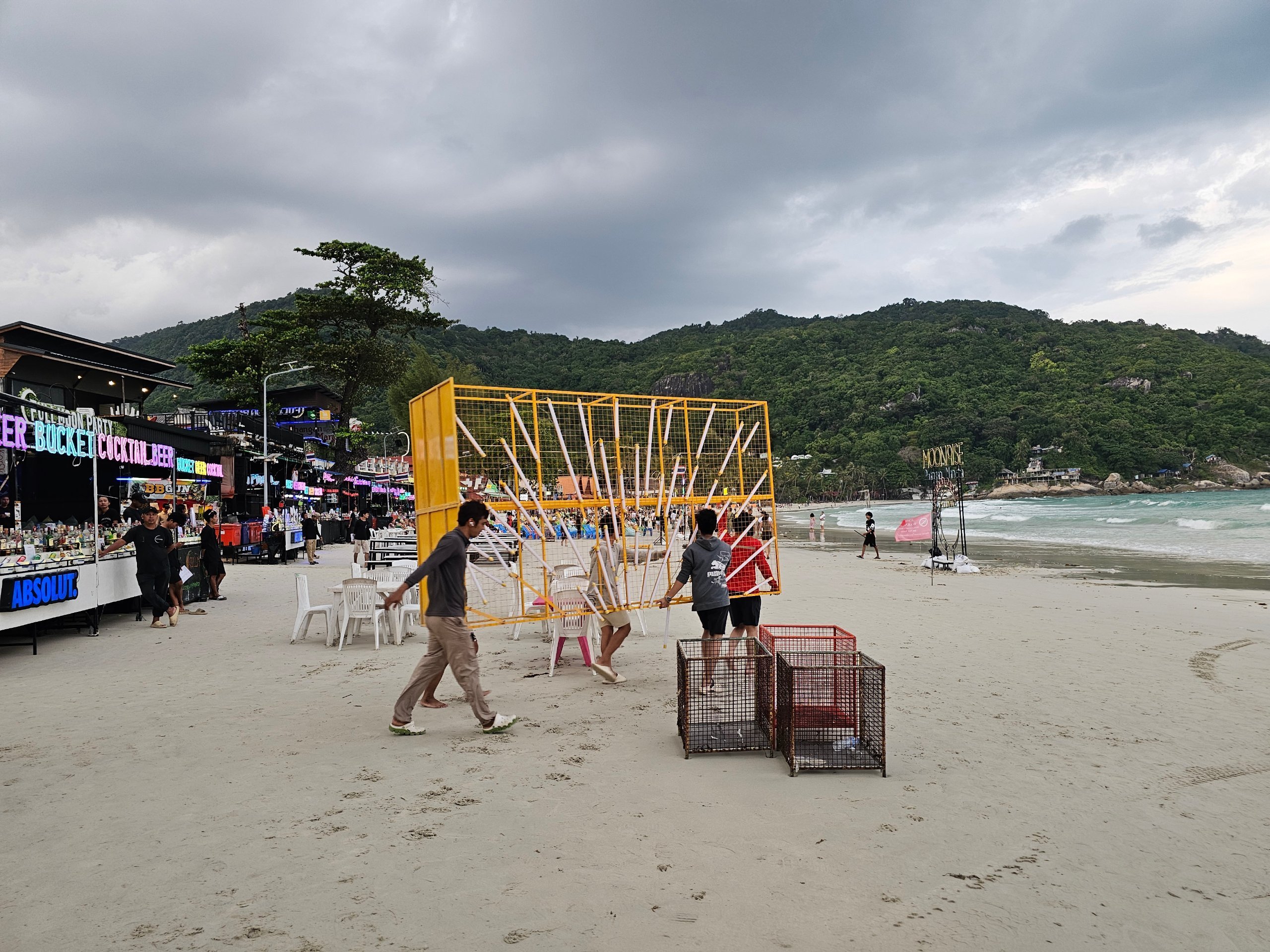Първото ни посещение на плажа Хаад Рин беше в следобедните часове, когато подготовката все още беше в ход.