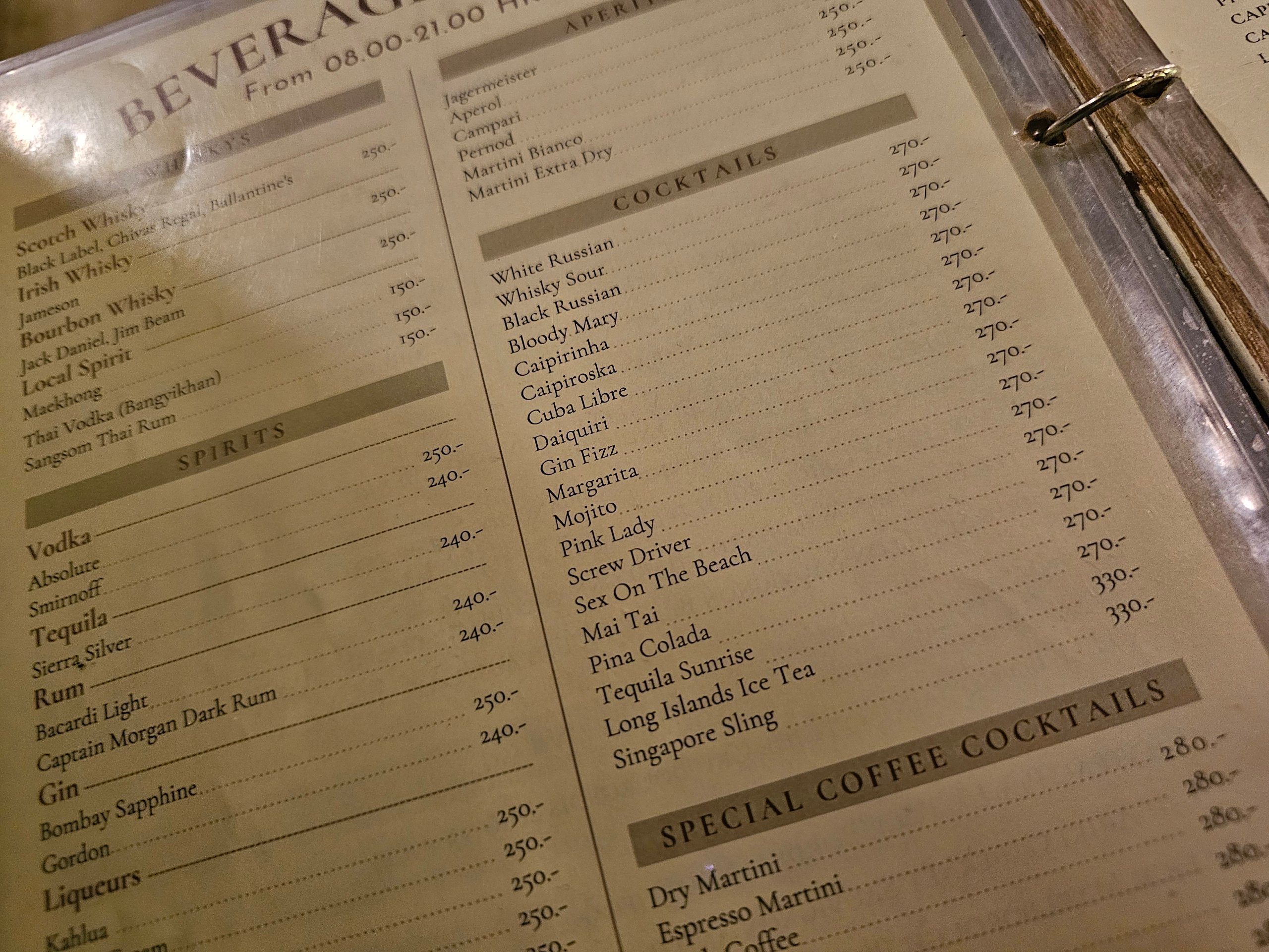 - напитки - от 250 THB