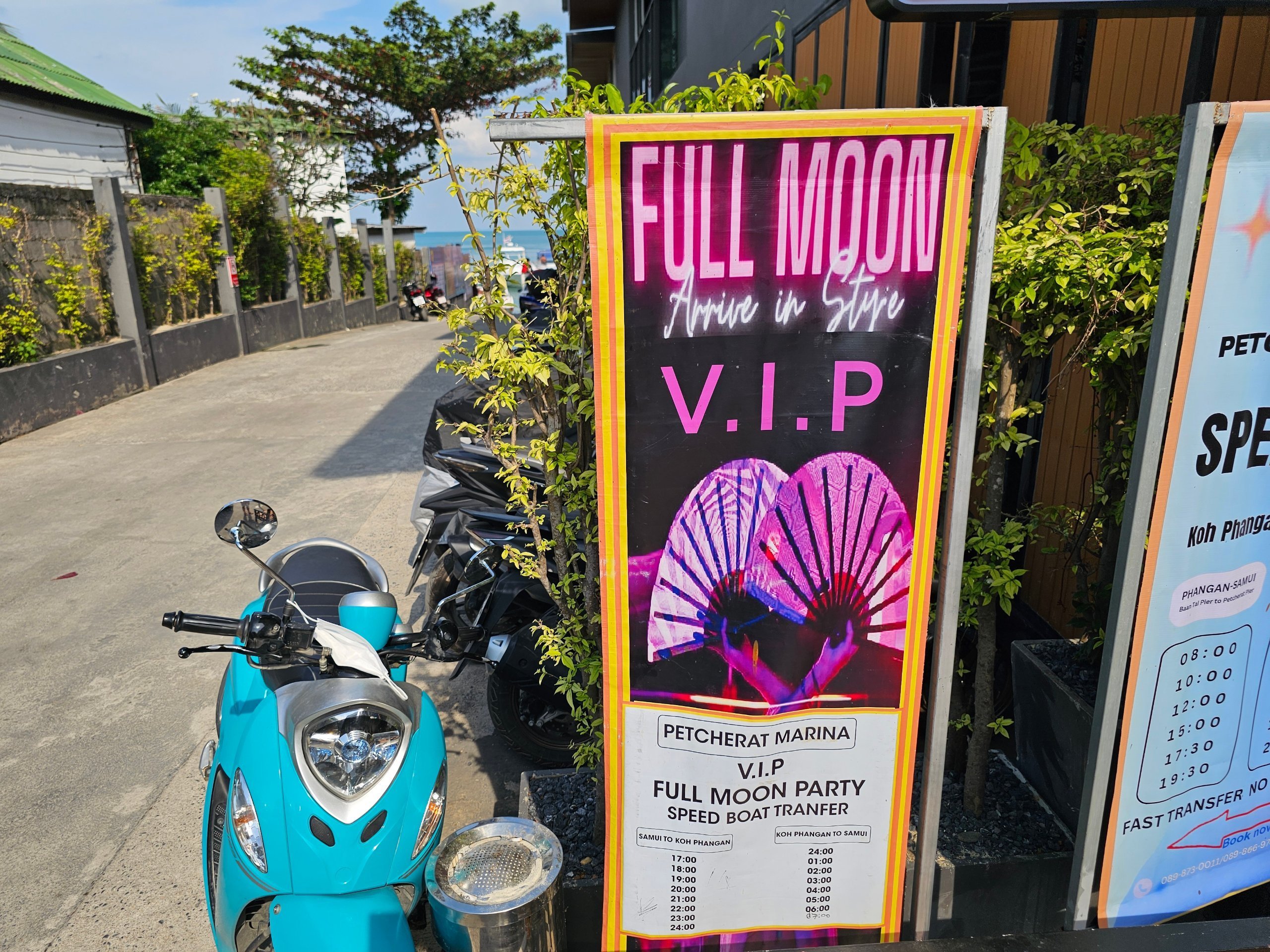 По ирония на съдбата, за партито по време на пълнолунието може би е по-добре да останете на съседния остров Самуи с неговите много чести корабни връзки.