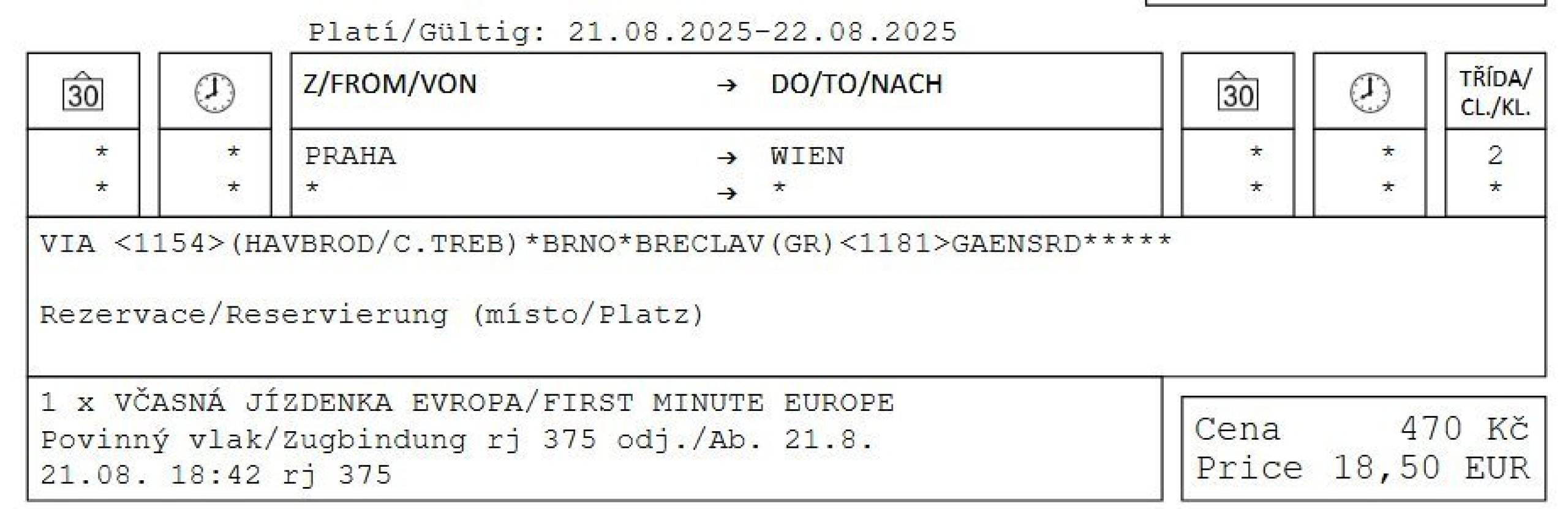 Бих казал, че трябва да се прилага точка 6.1, т.е. билетът е валиден от Прага до Виена и съм длъжен да използвам всички задължителни влакове, изброени за цялата дължина, което ще направя, само ще използвам някои други. Но може да бъде и обратното.