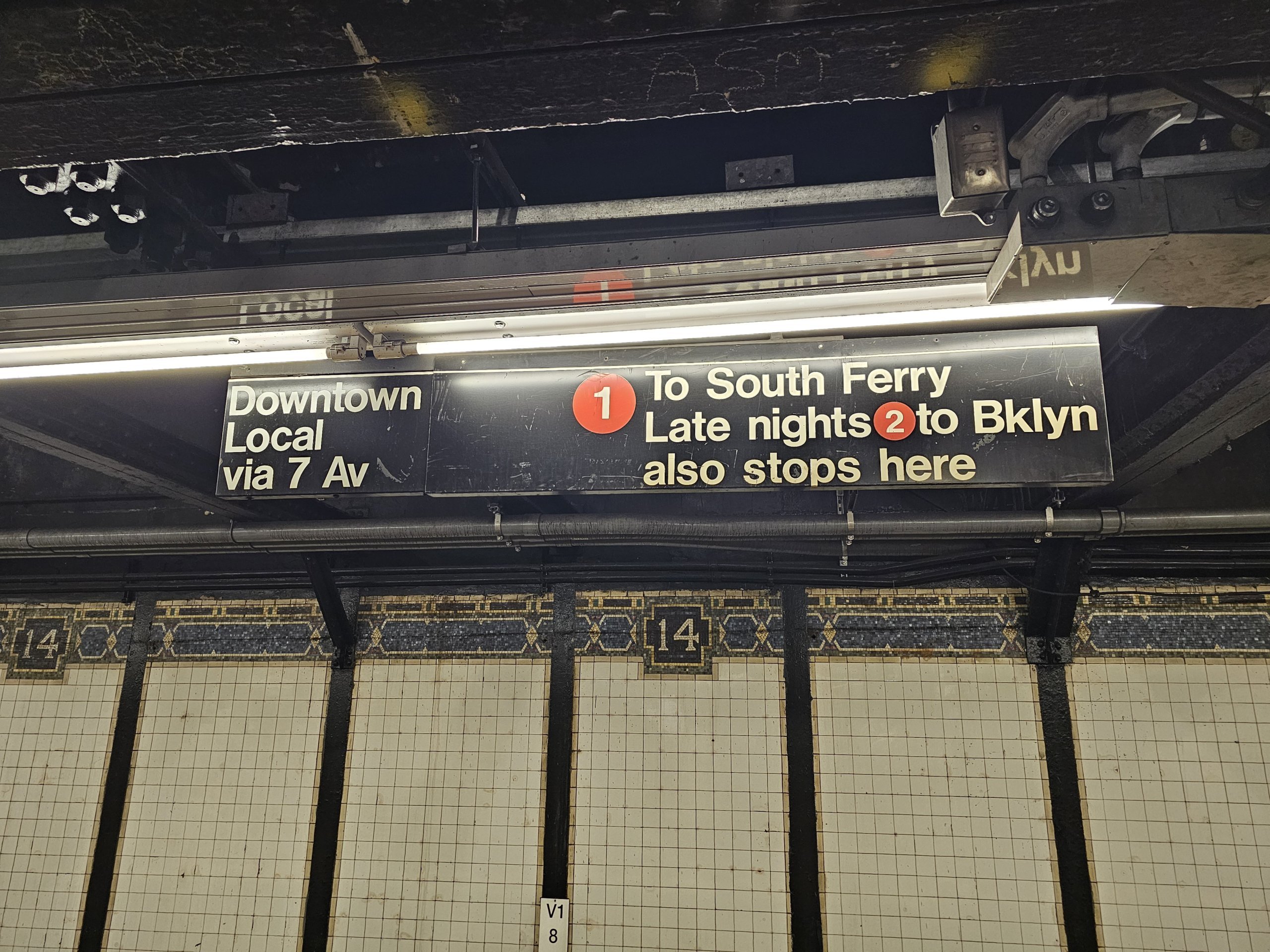 - Линии, които се движат през цялата нощ - 1, 2, 3, 4, 6, 7, A, D, E, F, G, J, L, M, N, Q, R, Staten Island Railway