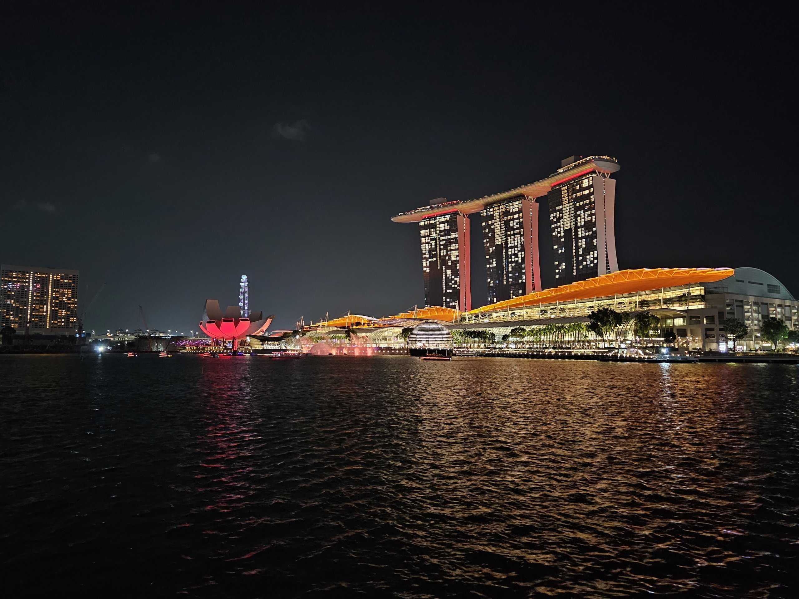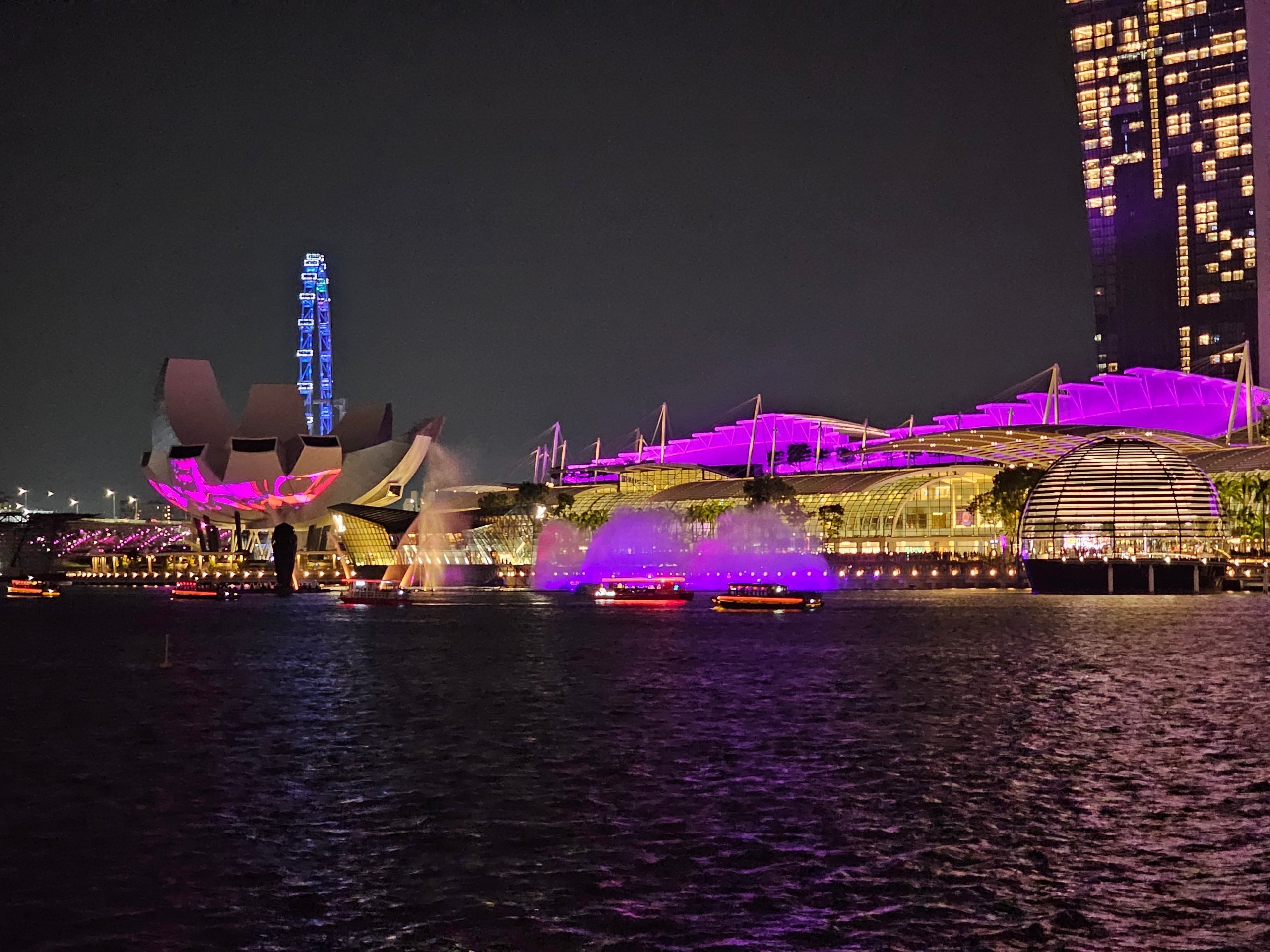 Не искахме да сме точно под Marina Bay Sands - имате най-близкото шоу, но мисля, че това е по-скоро недостатък - не виждате цялостната панорама.