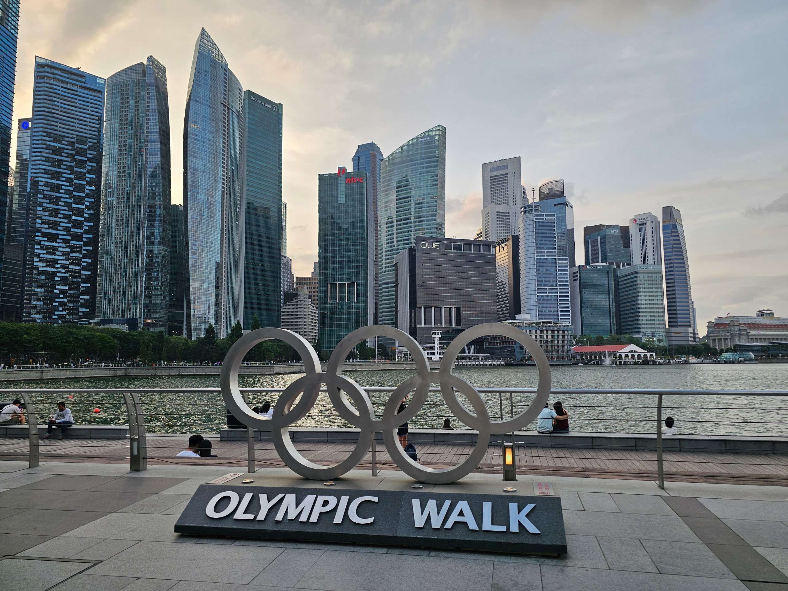 Широката пешеходна алея с палми, част от която се нарича Олимпийска алея, е едно от любимите ми места в Сингапур.