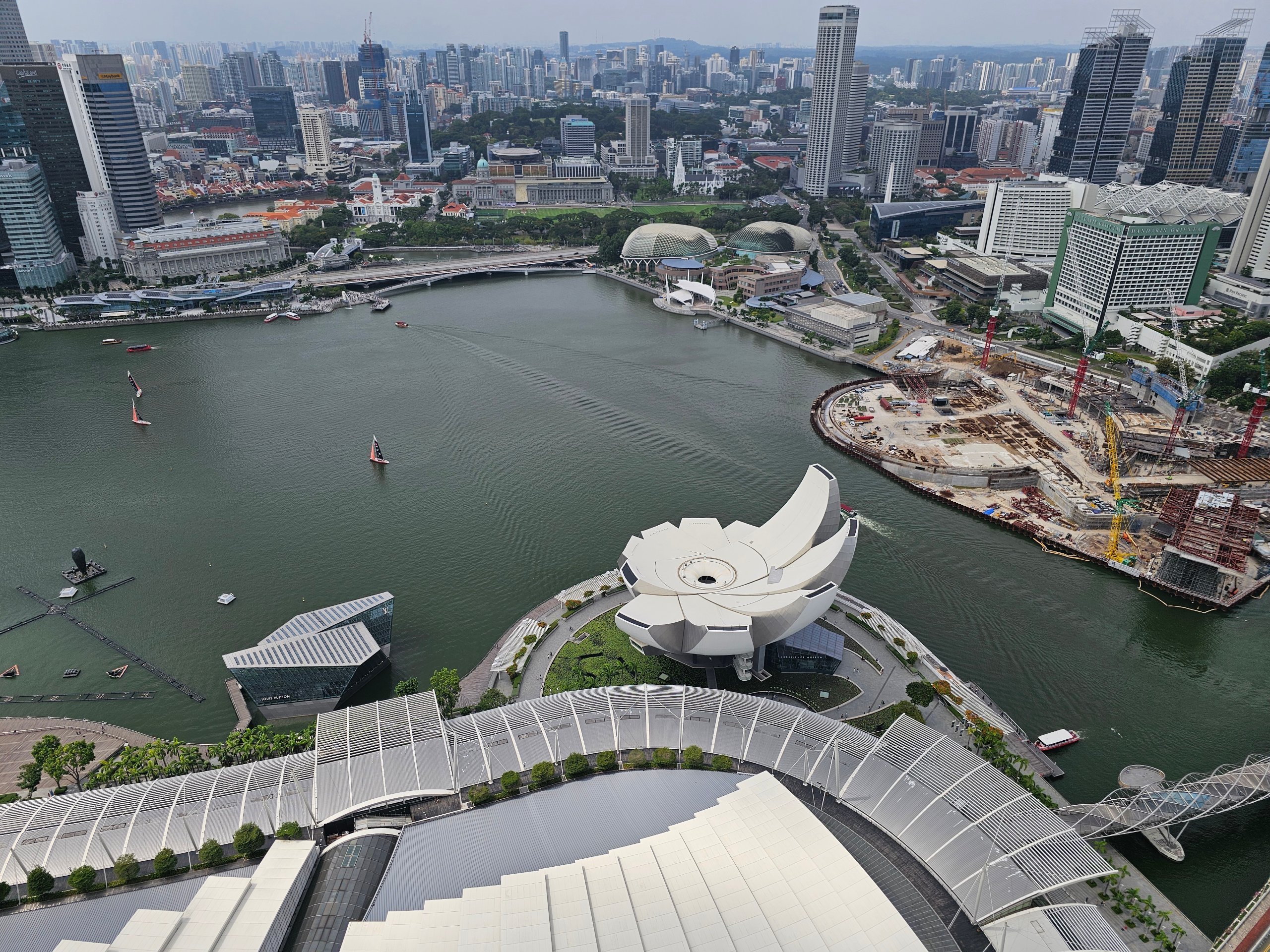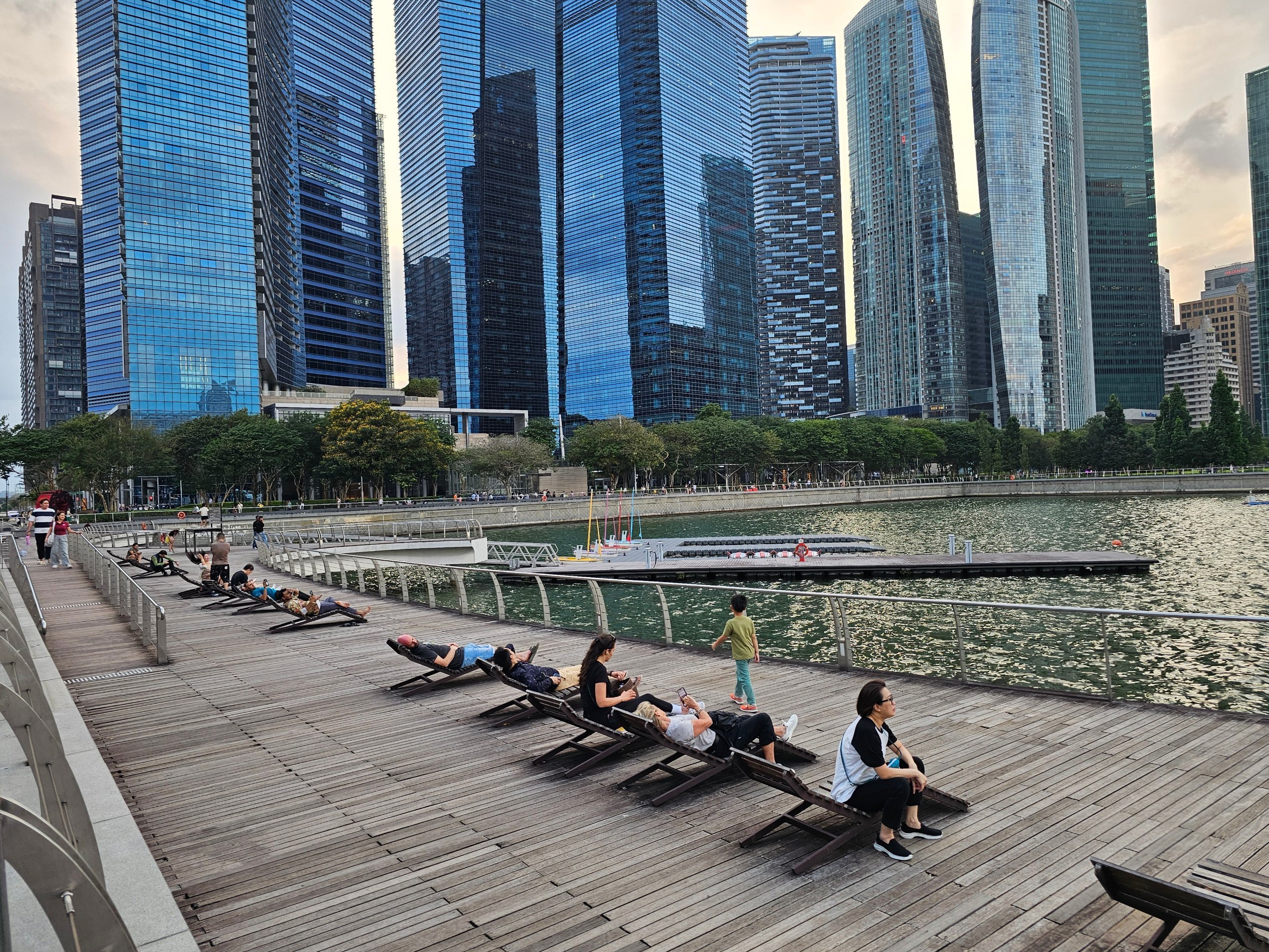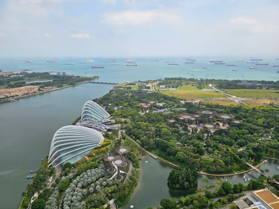 За мен си заслужава да отида тук. Оттук най-добре се вижда центърът на града, емблематичната линия от товарни кораби на заден план в морето и най-вече Gardens by the Bay. Не можете да ги видите толкова добре от никоя друга гледна точка.