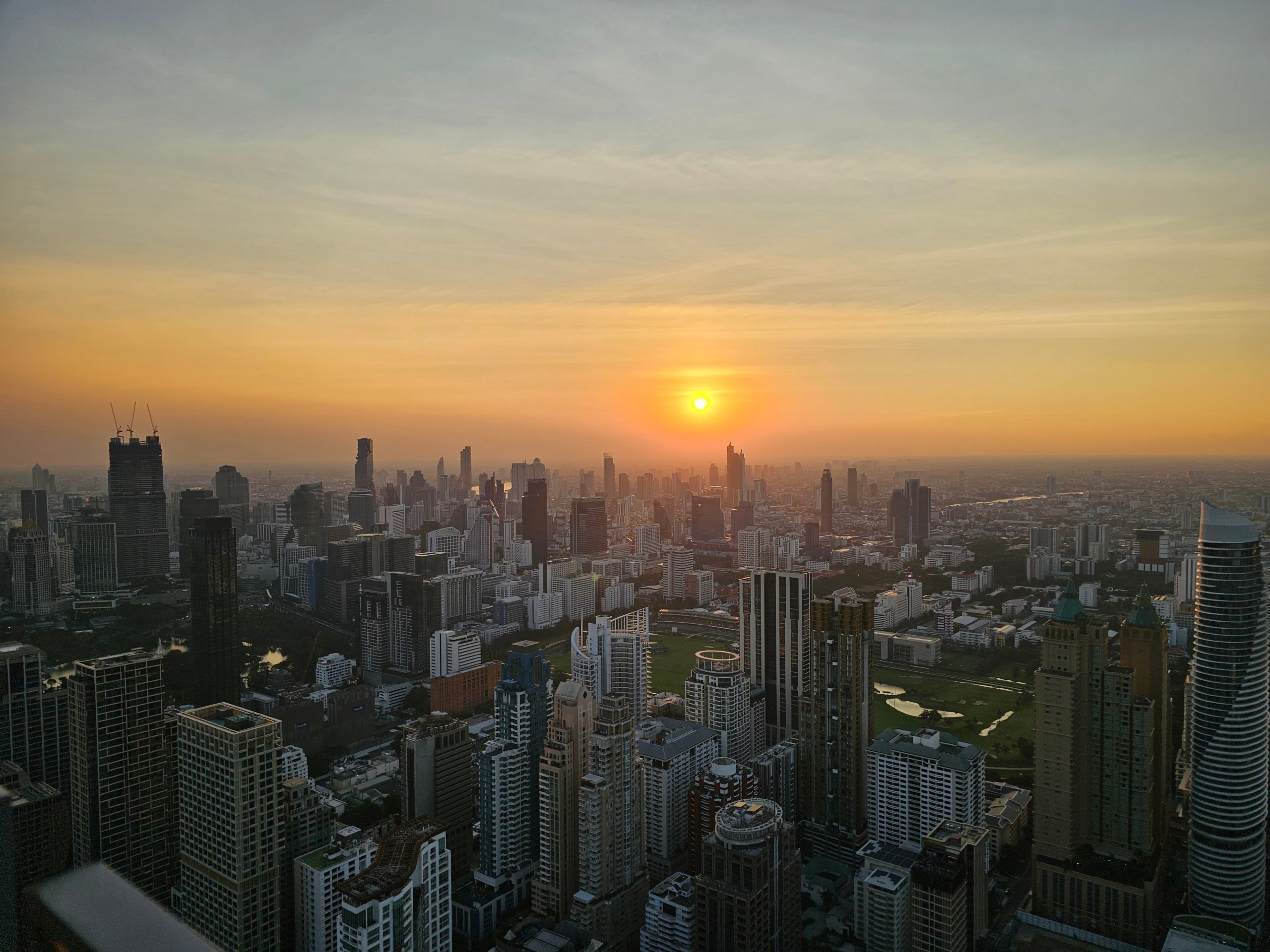 Панорамна гледка към Банкок с възможност да се види най-вече модерната част с високите сгради.