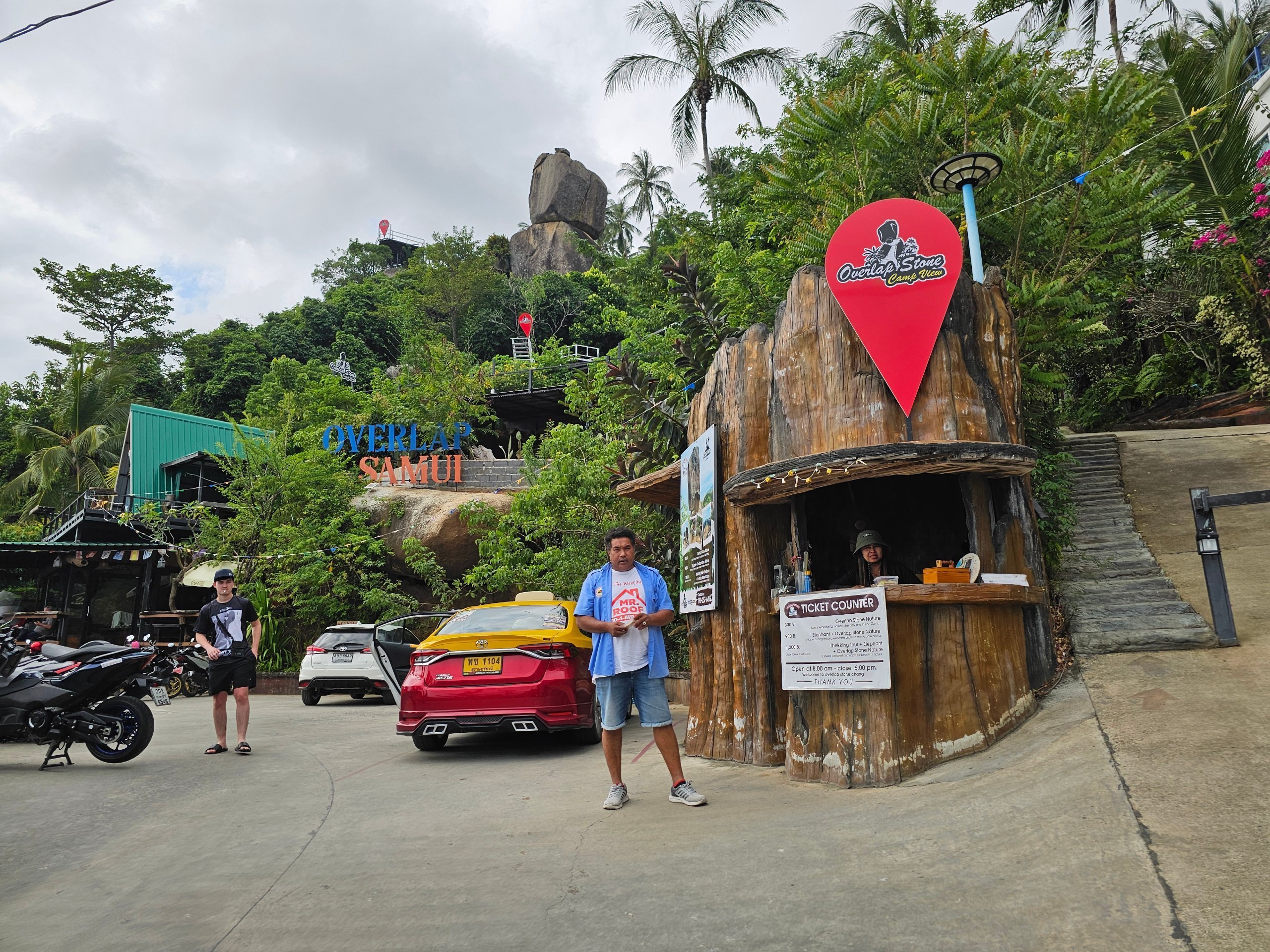 Таксито или Grab / Bolt най-често ще ви закарат само до Overlap Stone 1. Тъй като там често има голямо търсене, цените обикновено са по-високи, отколкото навсякъде другаде на острова.
