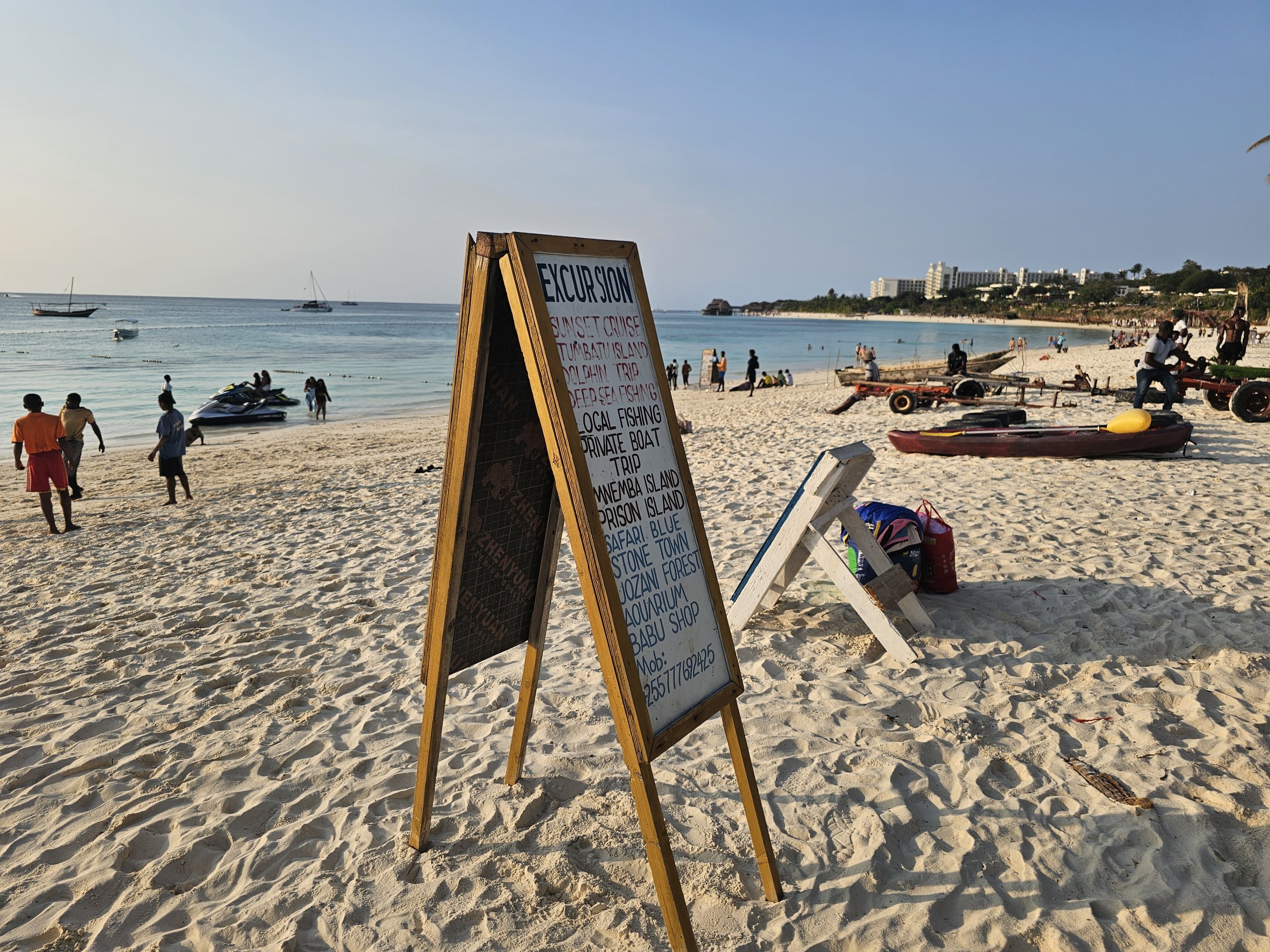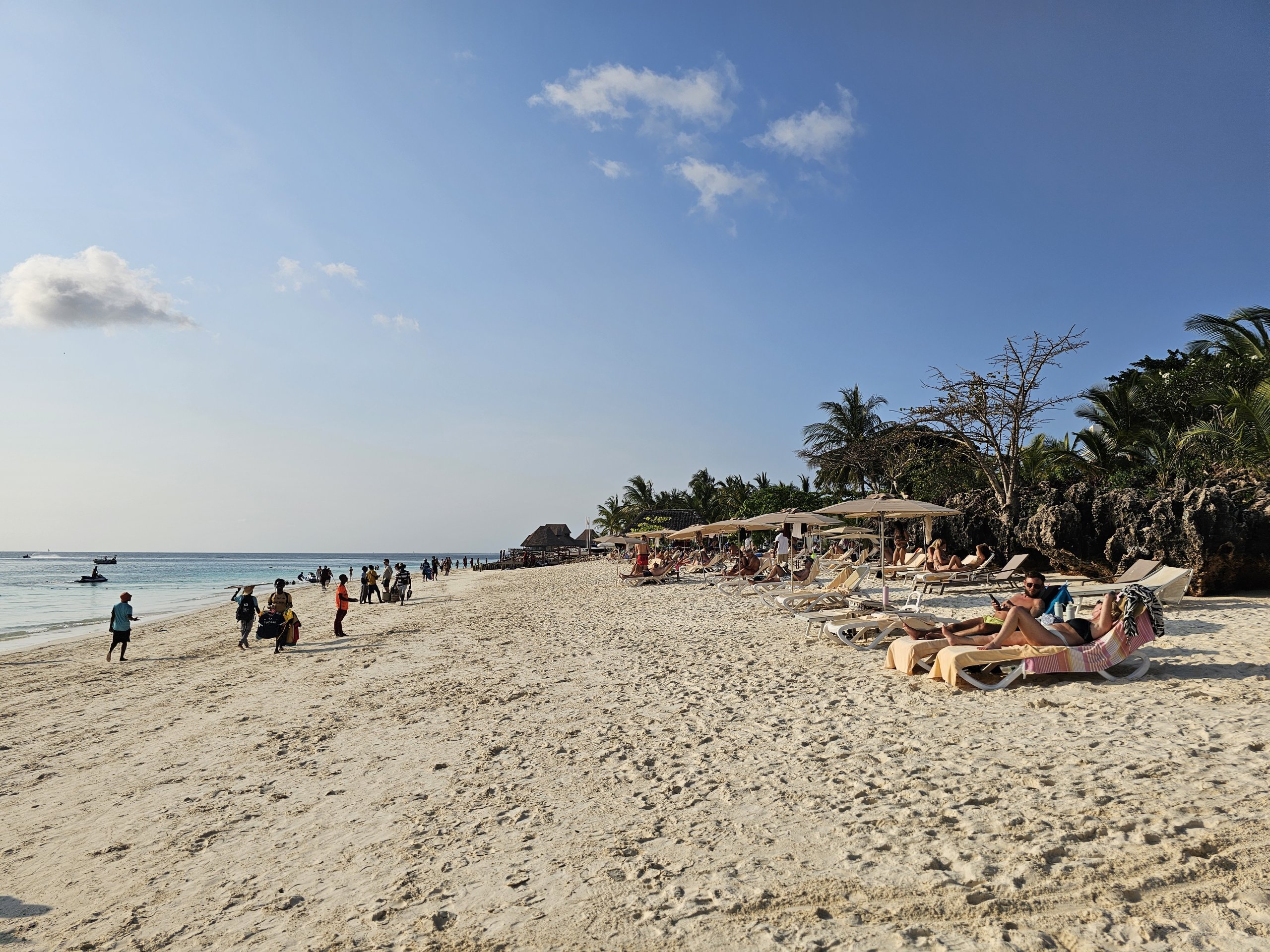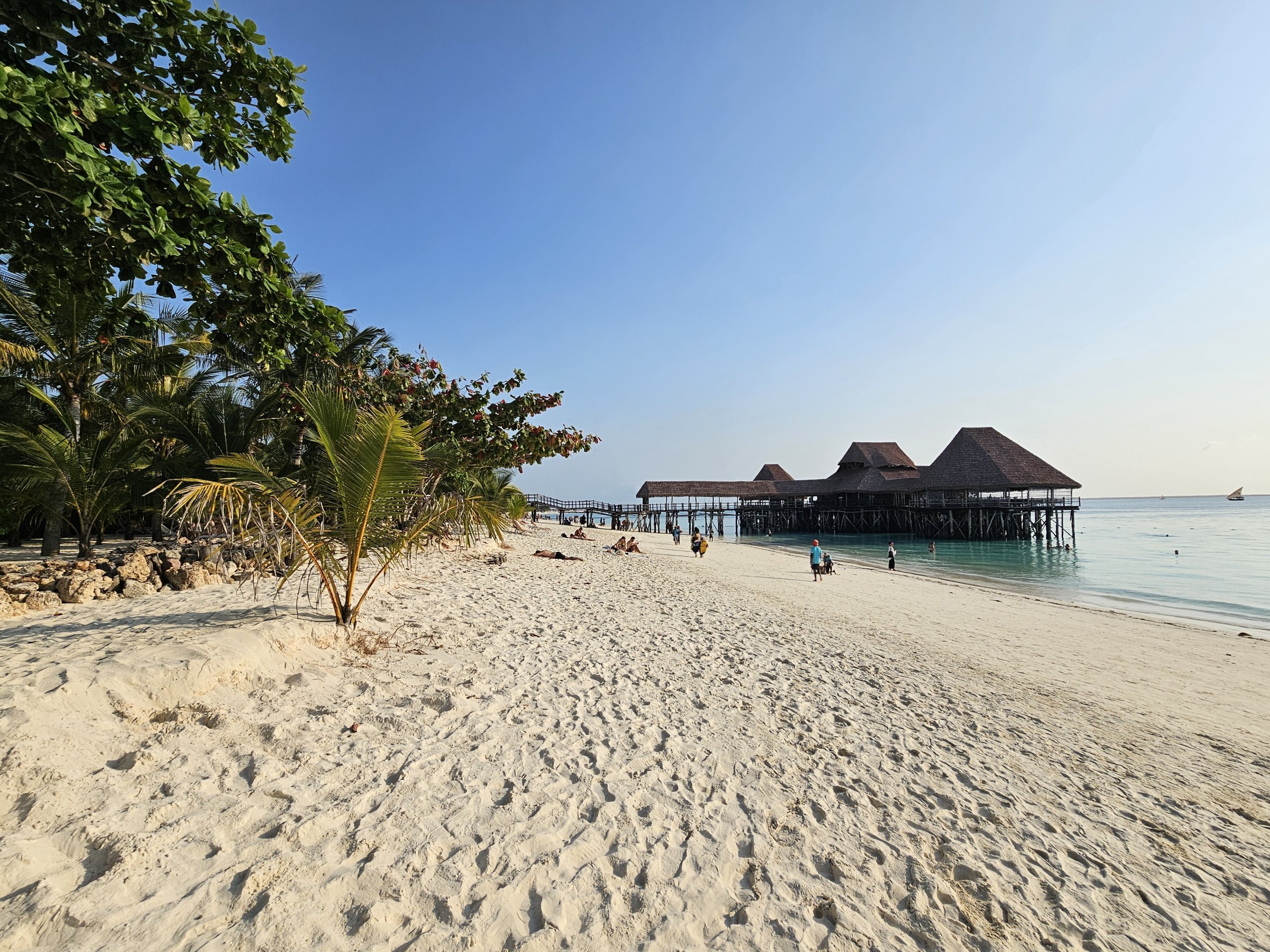 Местният плаж определено е най-хубавият, който съм посещавала на Занзибар, и можете да плувате в морето дори по време на отлив, за разлика от плажовете по източното крайбрежие.