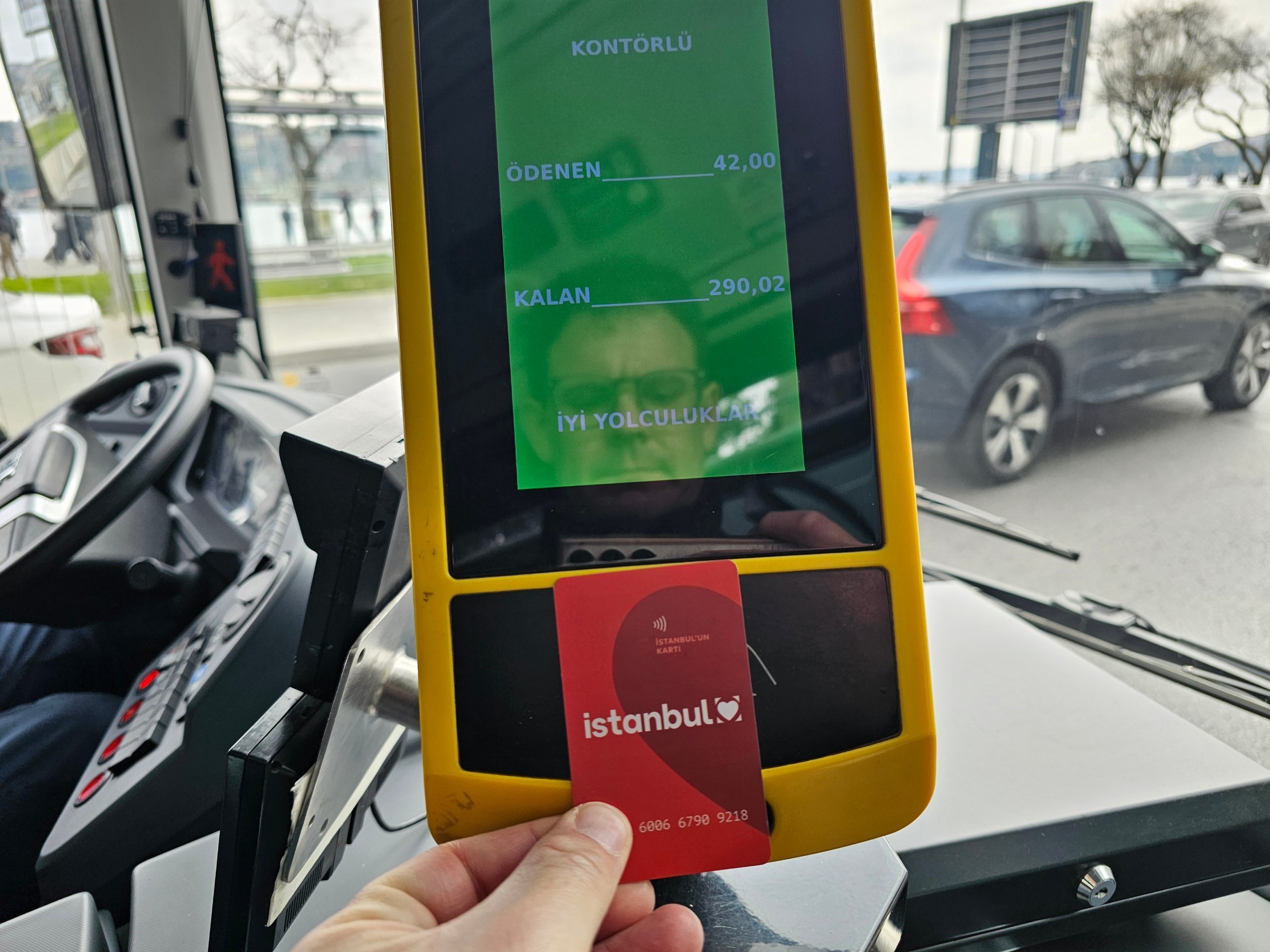В близост до шофьора има валидатор, към който се прикрепя карта Istanbulkart или собствена безконтактна карта.
