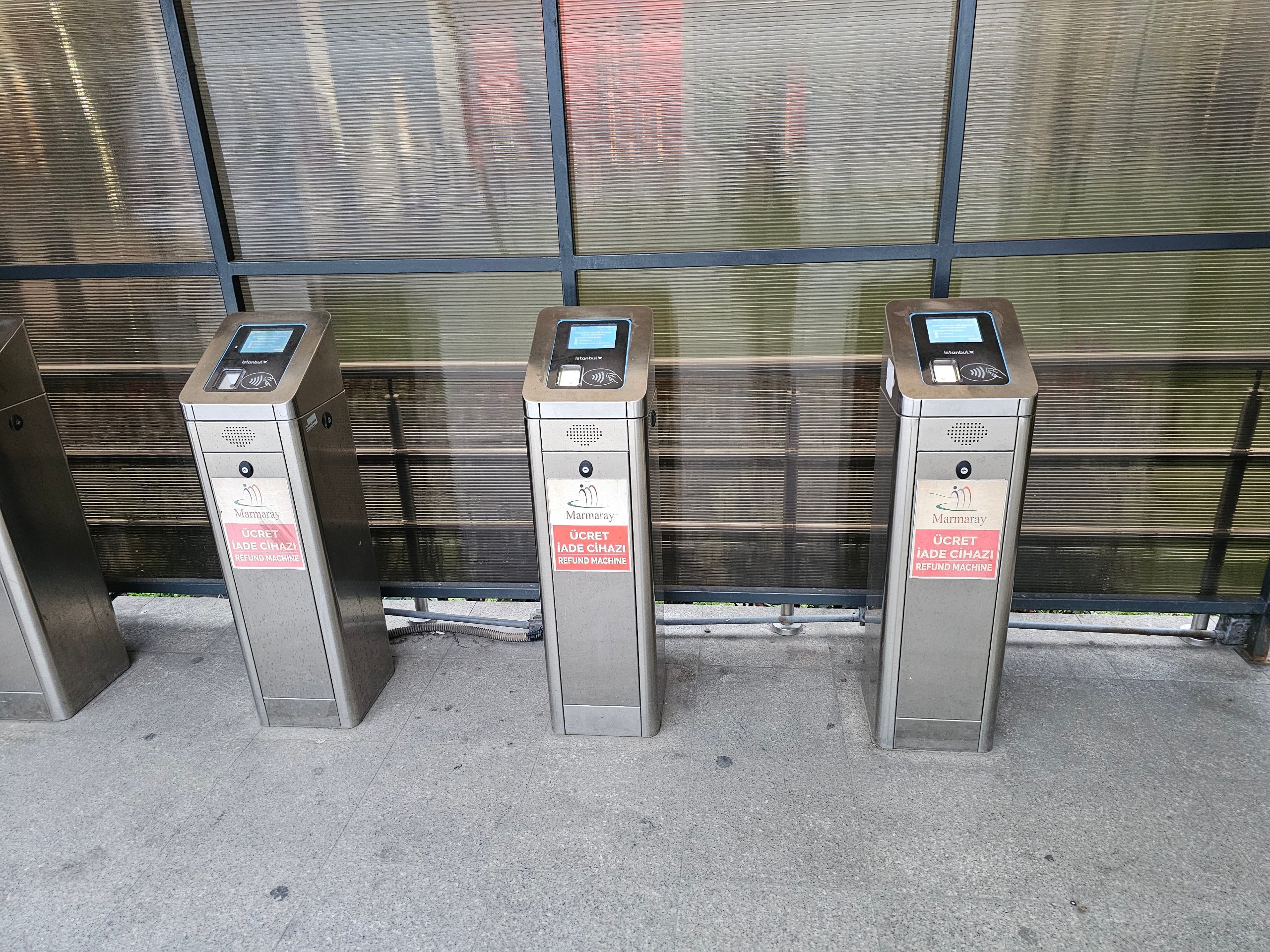 Когато излезете от гарата, намерете малките сребристи (понякога червени) валидатори "Refund machine", към които отново прикрепяте IstanbulKart и се изчислява действителната цена (обикновено около 35 try за краткия преход Сиркечи - Üsküdar.