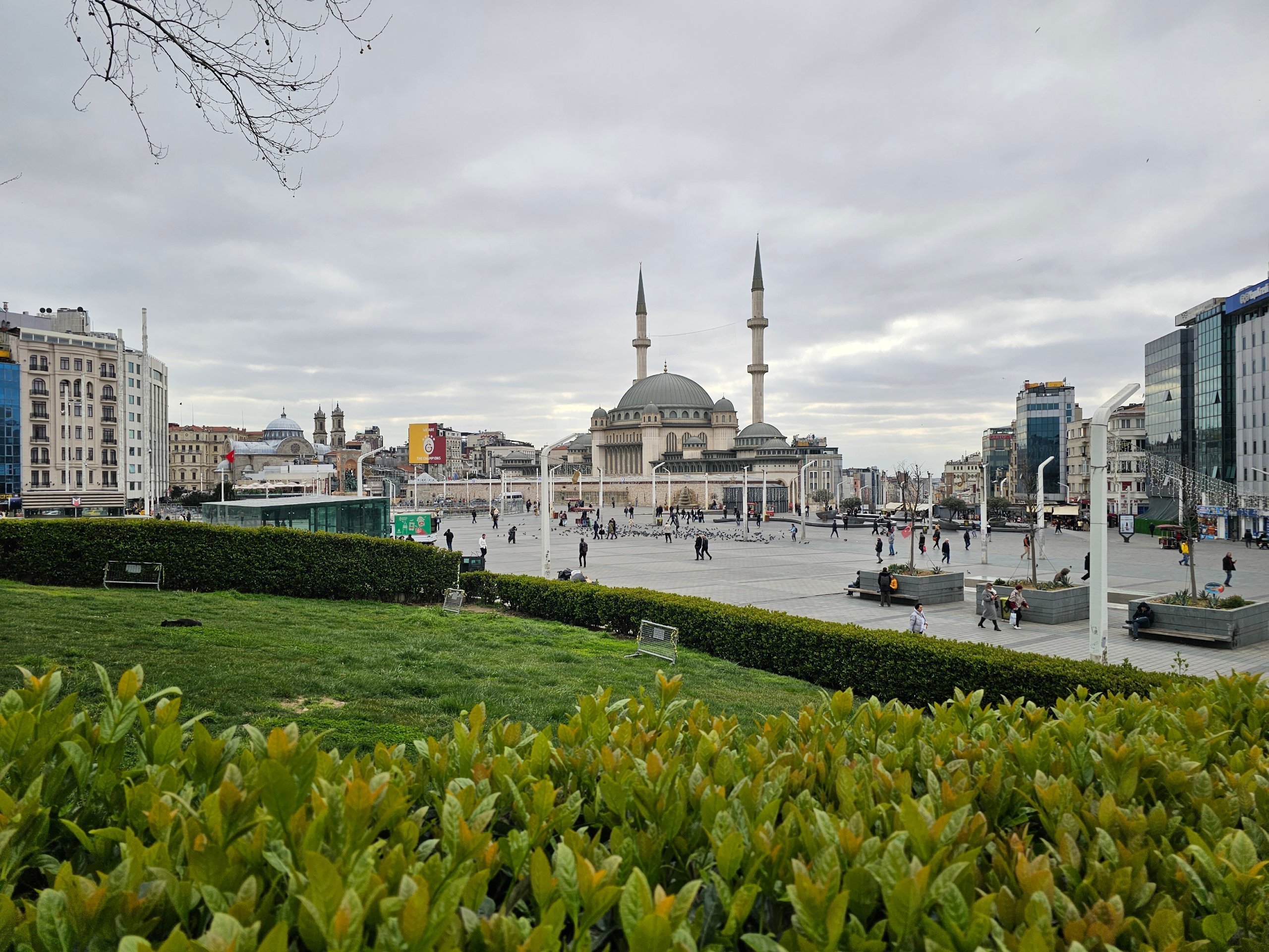 В средата на площада има хубав парк, а в южния край е разположена джамията Таксим.