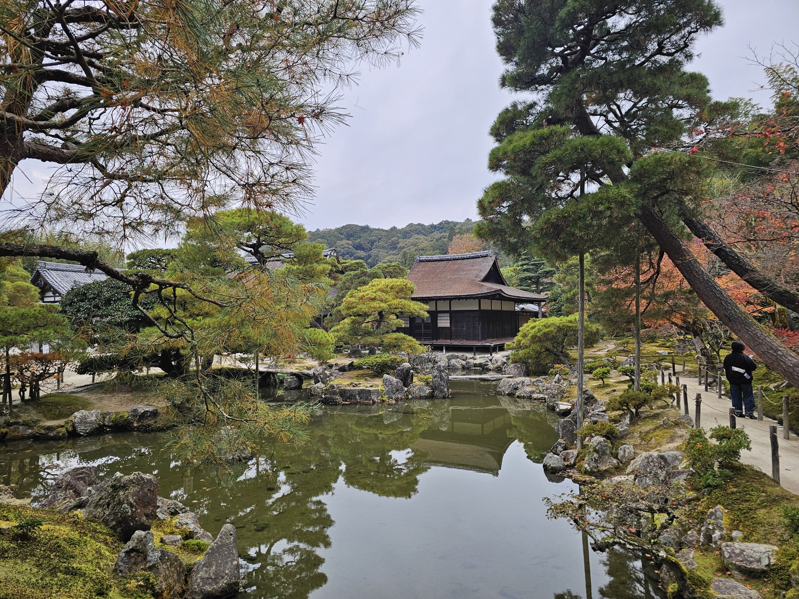 Разположен в източната част на Киото, той изглежда много по-спокоен от Златния павилион. Основната сила на мястото не е в самата сграда, а в градините.