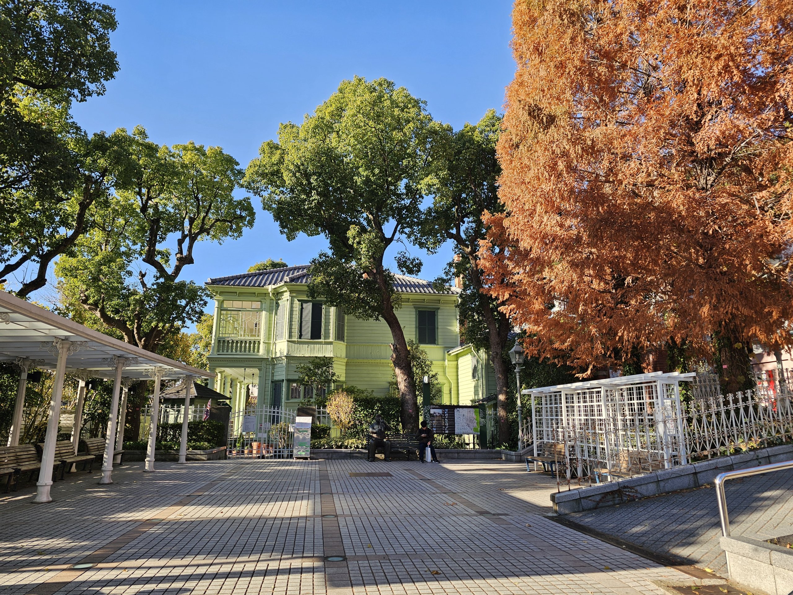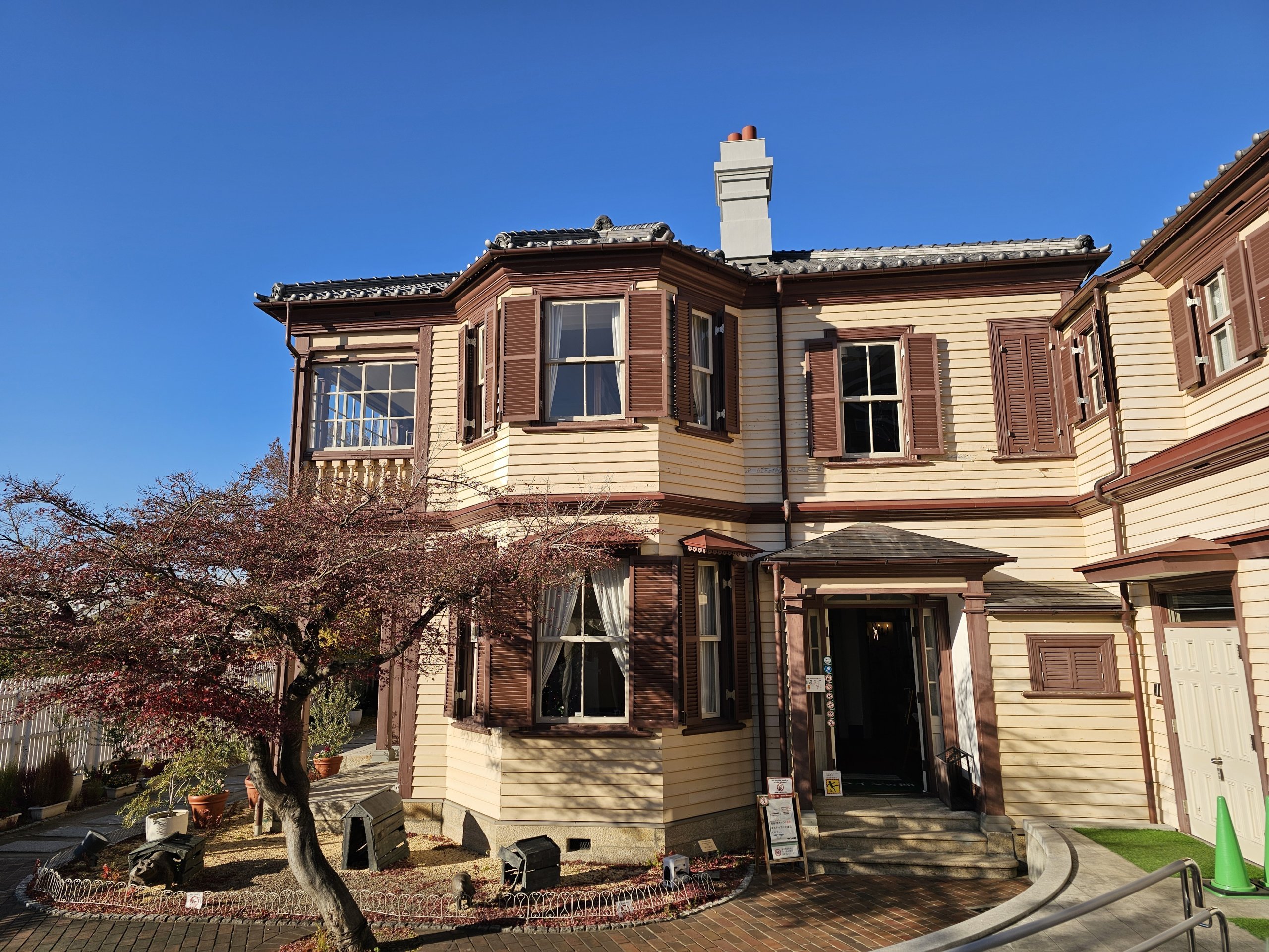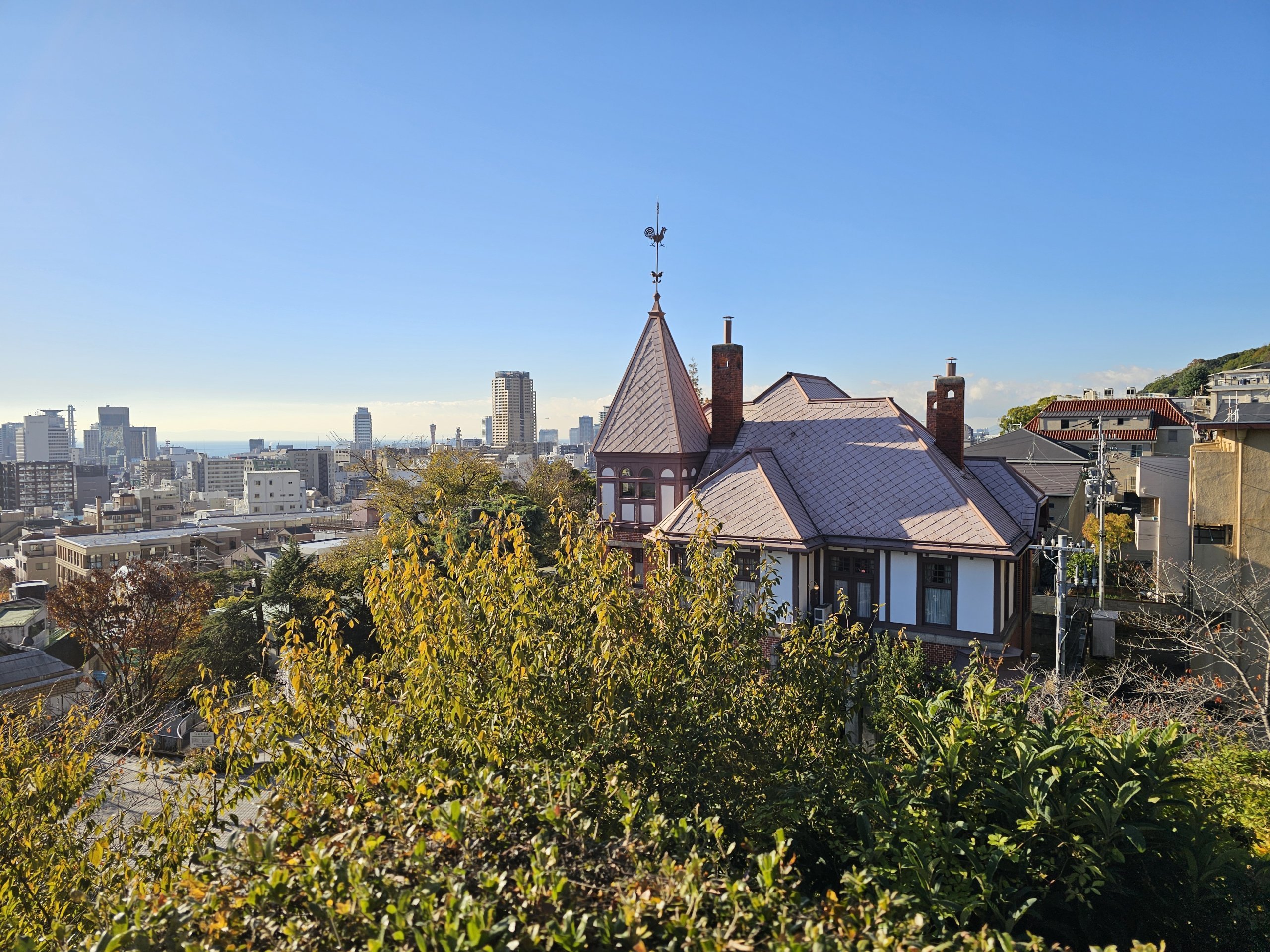 За разлика от повечето японски градове тук ще видите европейска архитектура, кафенета в стари вили и по-спокойна атмосфера, отколкото в оживения център на града, на пристанището или дори в близките градове Киото и Осака.