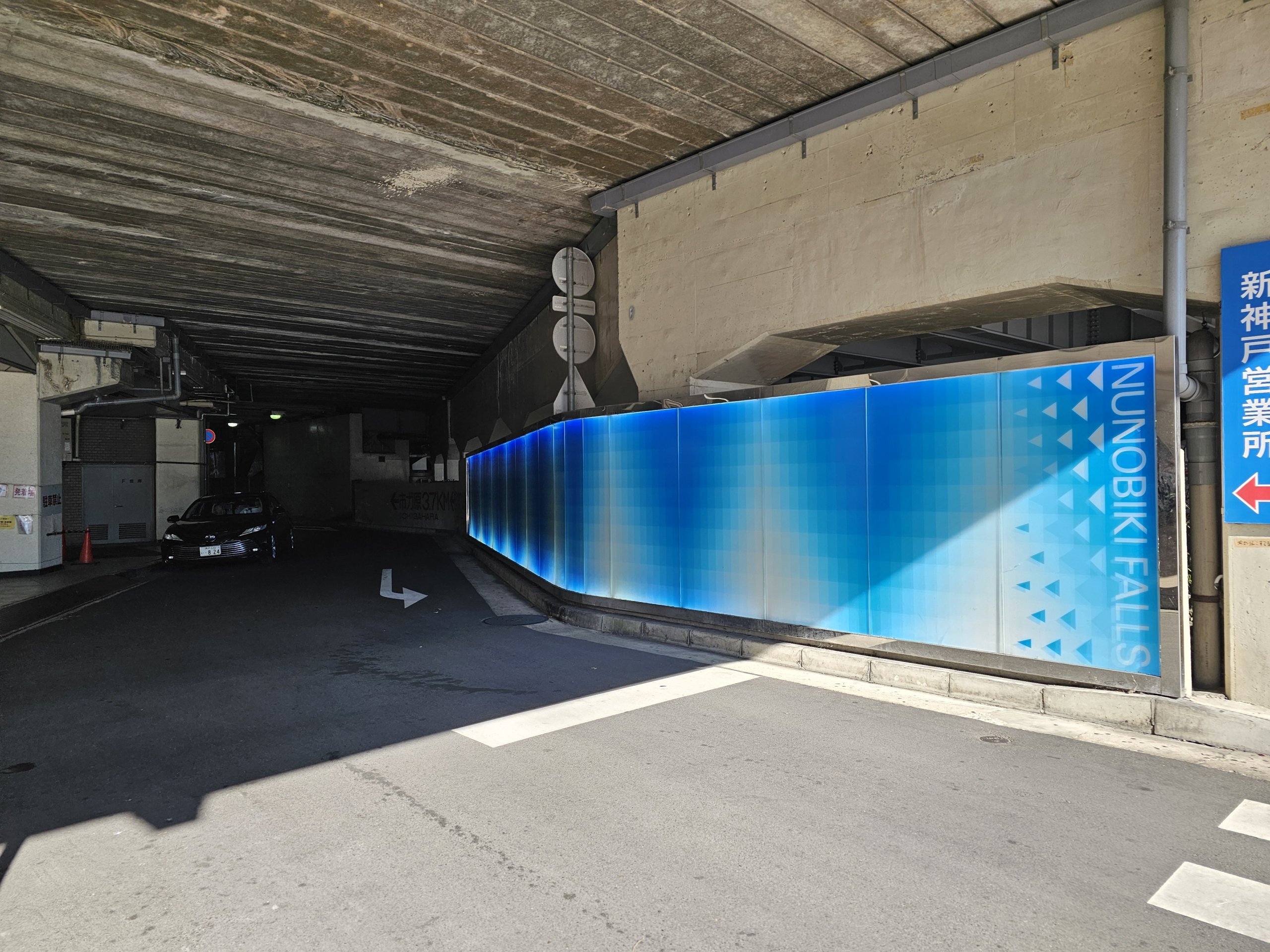 Първо трябва да преминете през подлеза под гарата, който е маркиран в синьо и на който пише "Водопади Нунабики".