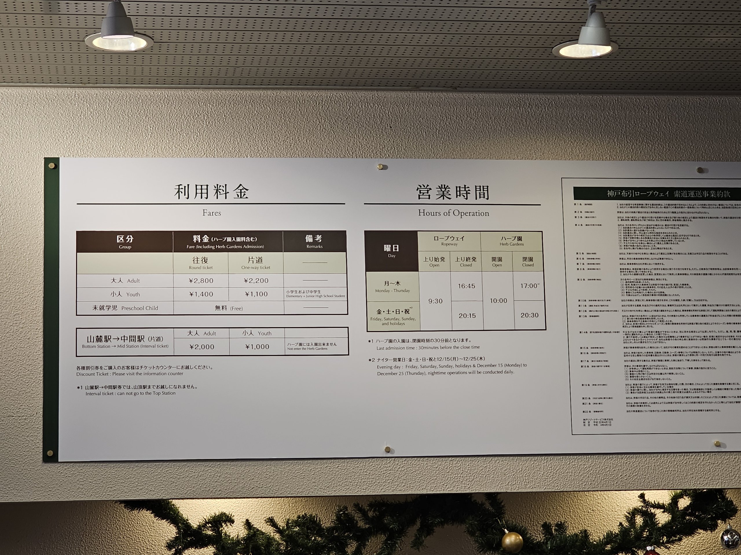 Подробна и актуална информация на официалния уебсайт: kobeherb.com/en/hours-of-operation-and-fares.