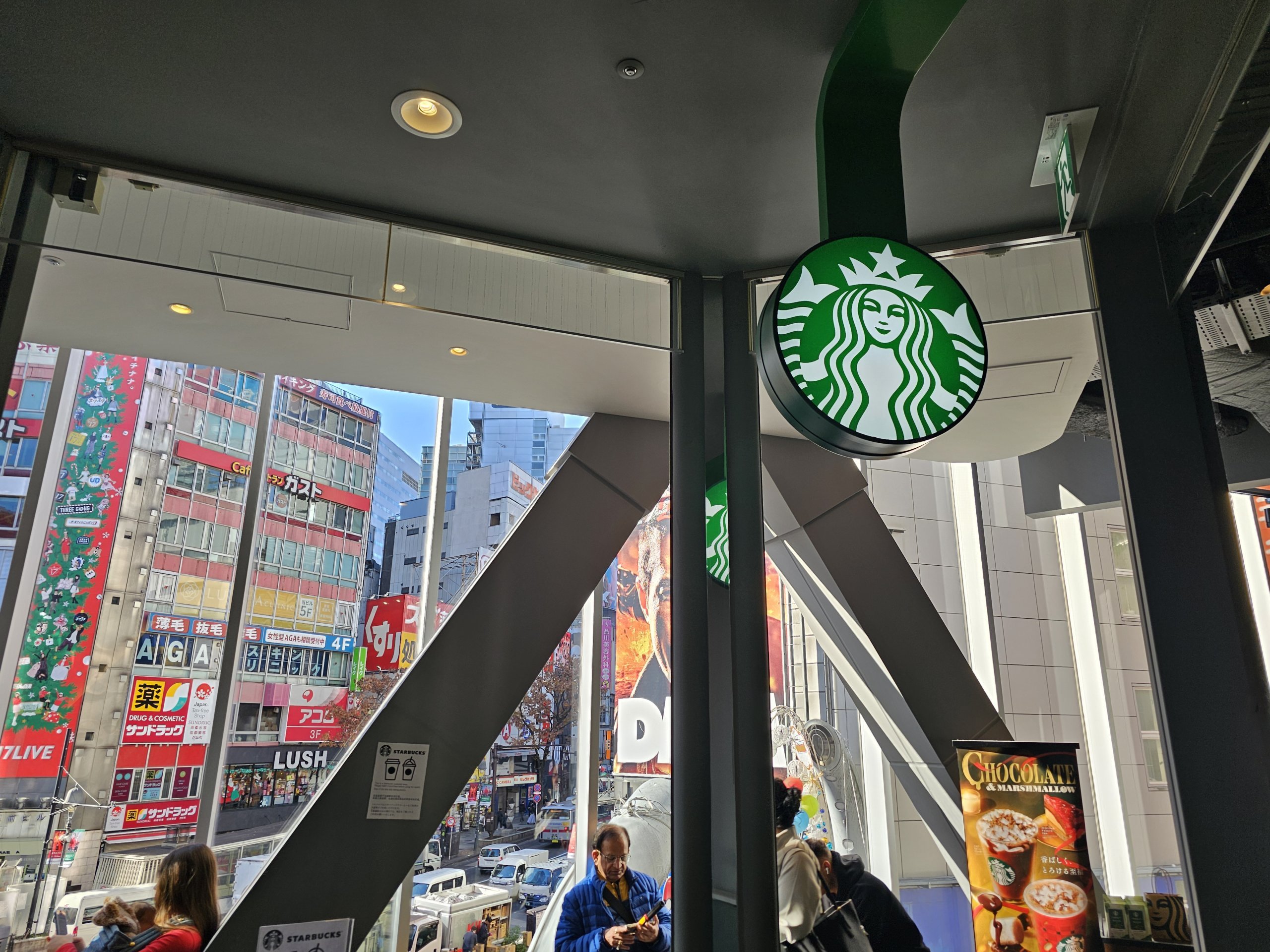 От него се открива хубава гледка към кръстовището Шибуя, макар и не толкова перфектна, колкото от Share Lounge, тъй като тя е леко закрита от покривната конструкция.