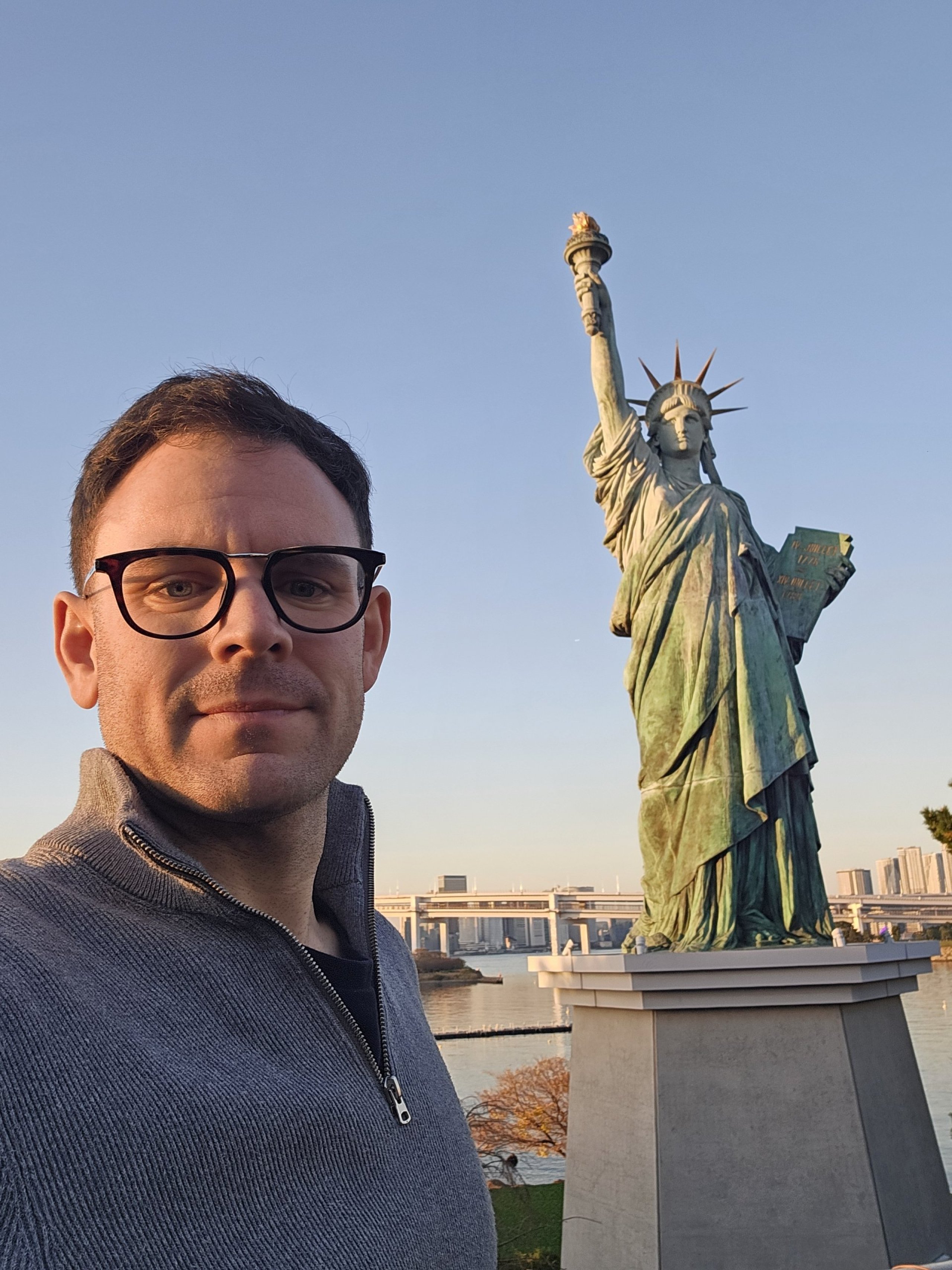 Препоръчвам ви да посетите Статуята на свободата в Токио по време на залез слънце, който първо осветява статуята в красив златист цвят, а след като се стъмни, статуята е осветена в редуващи се цветове.