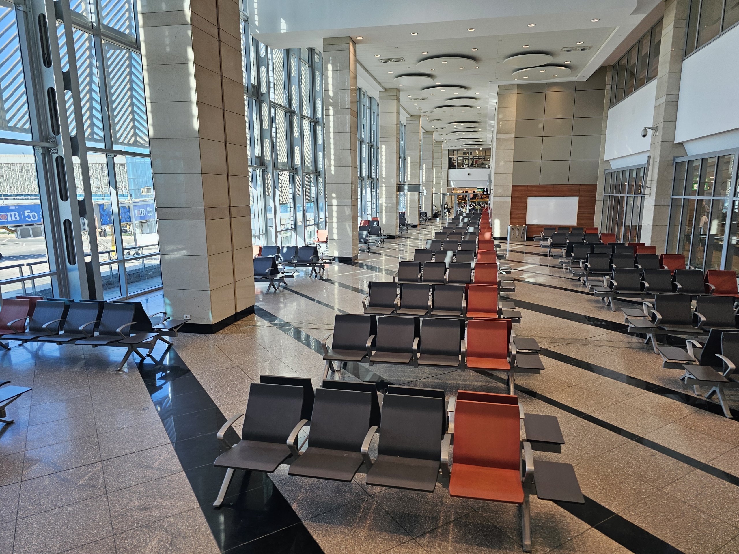 На Терминал 2 и 3 има голям брой места след проверката за сигурност в зоната на изхода за заминаване. За разлика от тях в обществената зона на летището почти няма места за сядане.