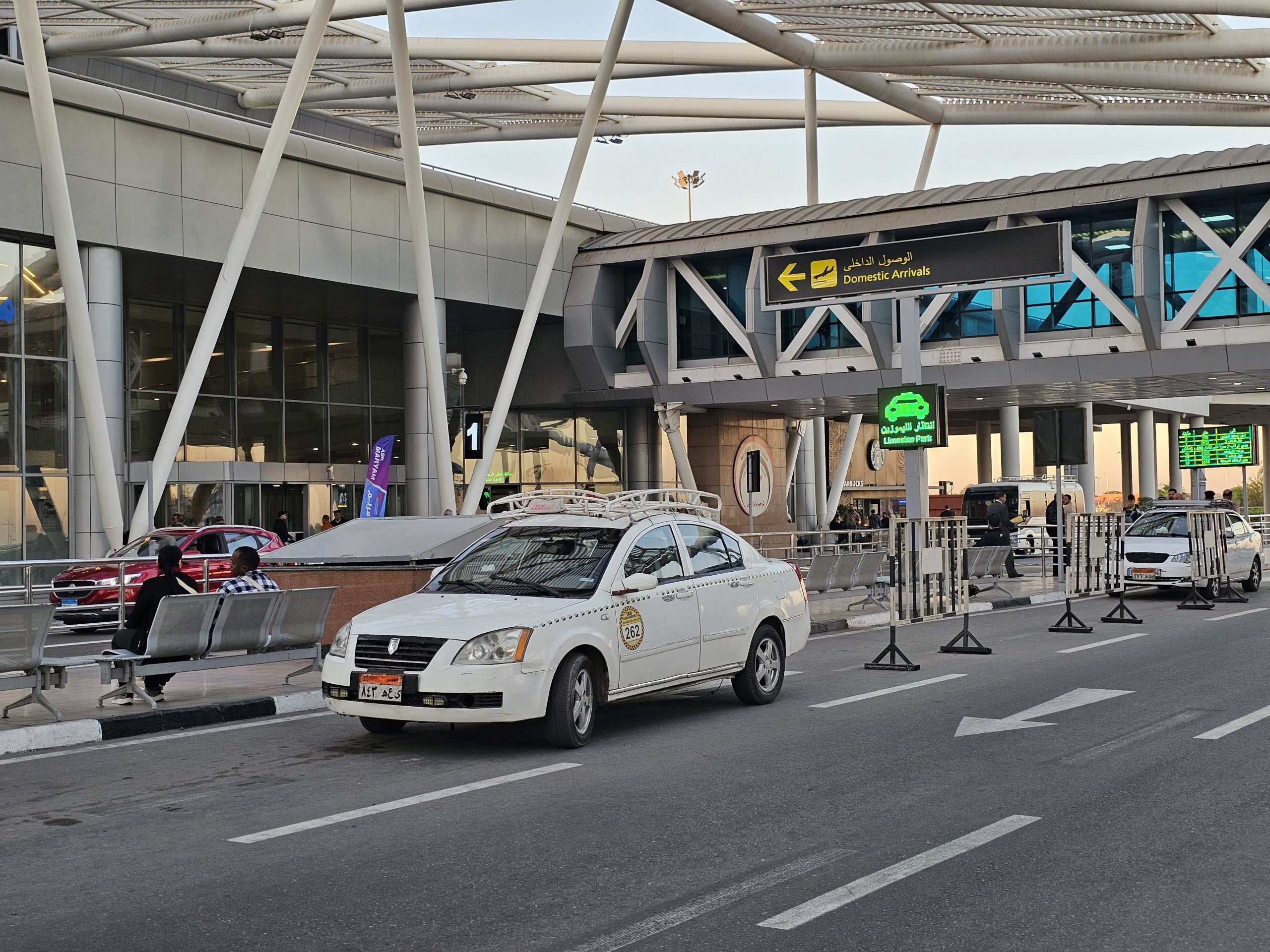 Официалните бели таксита са вездесъщи на летището и в Кайро по всяко време на деня и нощта.
