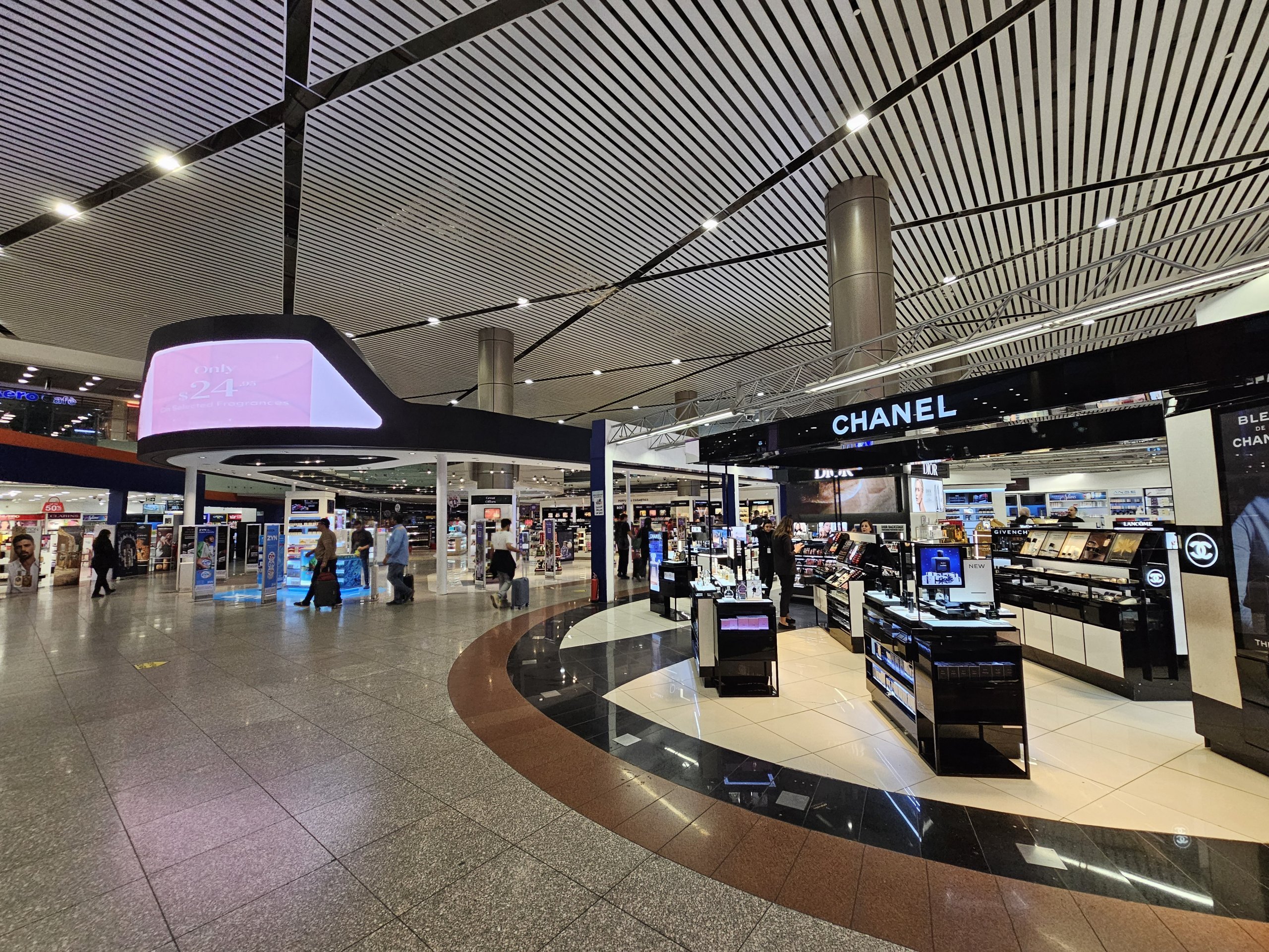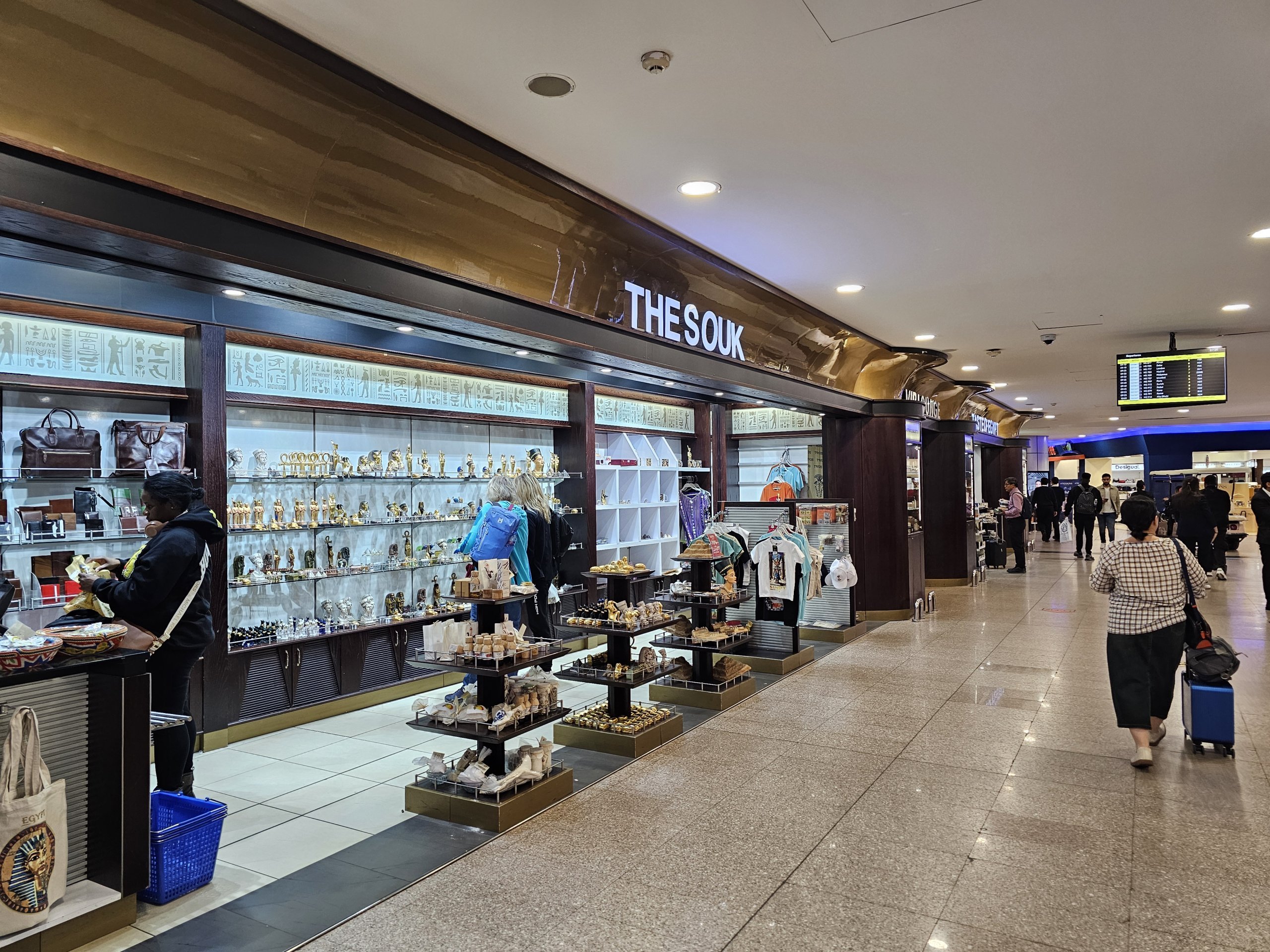 И двата терминала са оборудвани с голям брой магазини, в които се продават duty free стоки, сувенири, играчки, мода или бижута. Повечето от магазините се намират след проверката за сигурност и много от тях са отворени 24 часа в денонощието, 7 дни в седмицата.
