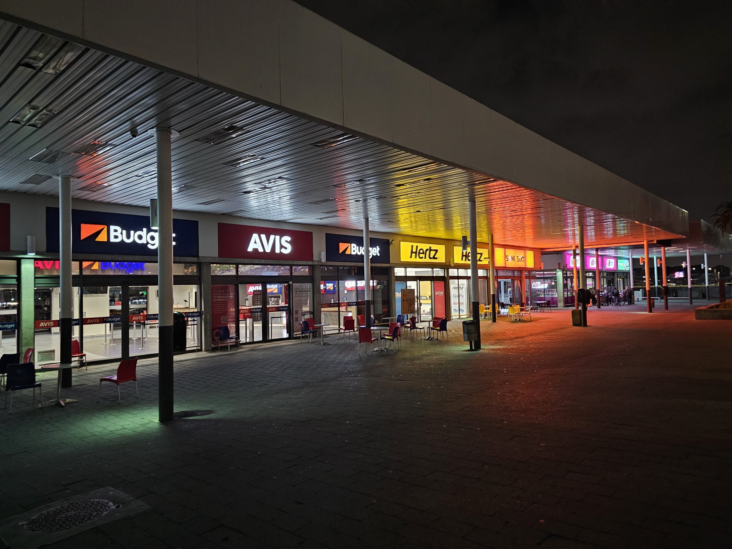 Всички пунктове за отдаване на автомобили под наем се намират на около 3-5 минути пеша от терминала по добре маркирана пешеходна пътека.