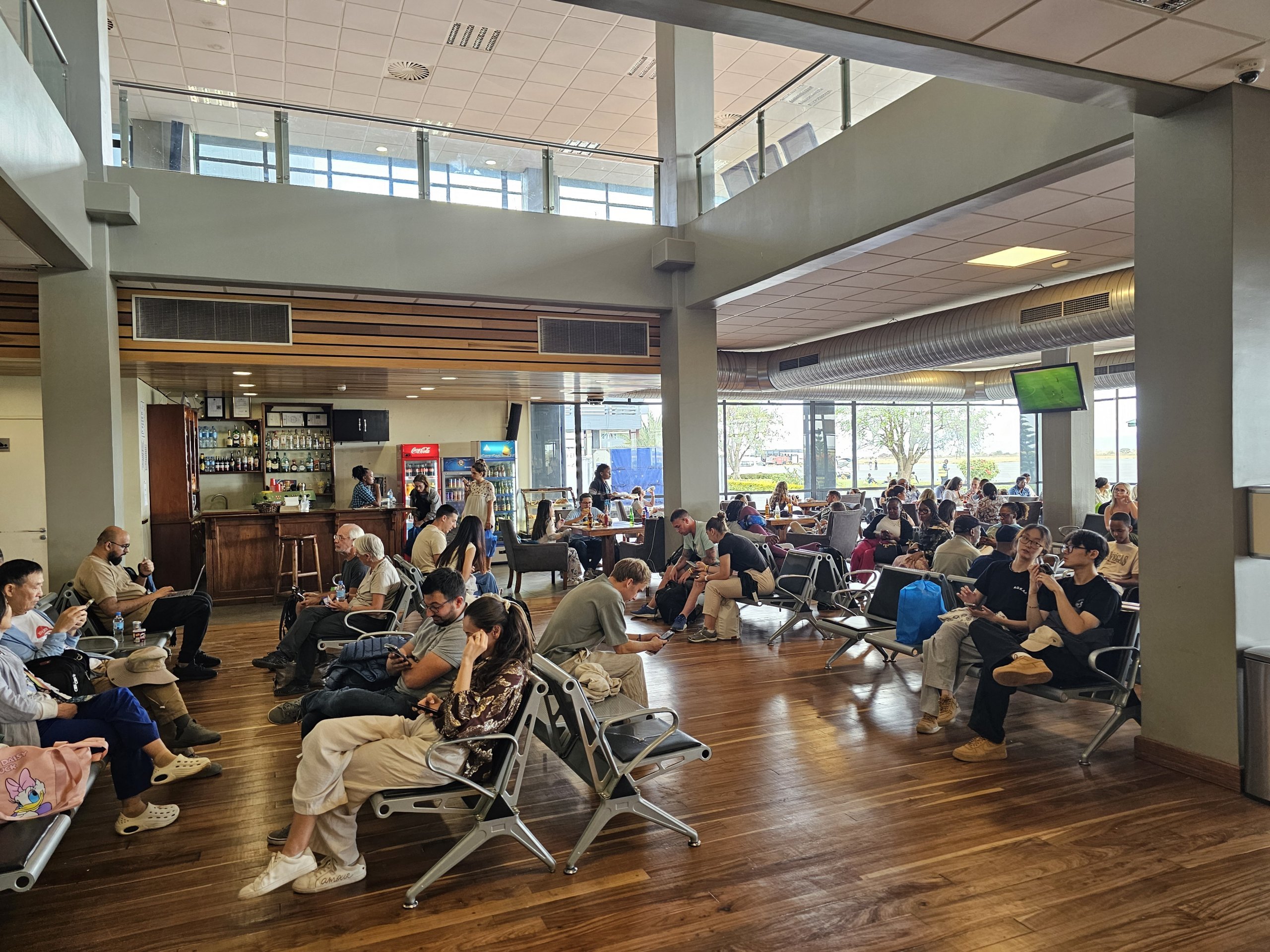 Недостатъкът е, че е много претъпкан, ако в момента се чекира по-голям самолет за международен полет, и липсват места за сядане. Въпреки това процедурите преди заминаване са сравнително бързи и е необходимо да пристигнете само 2 часа преди заминаването.