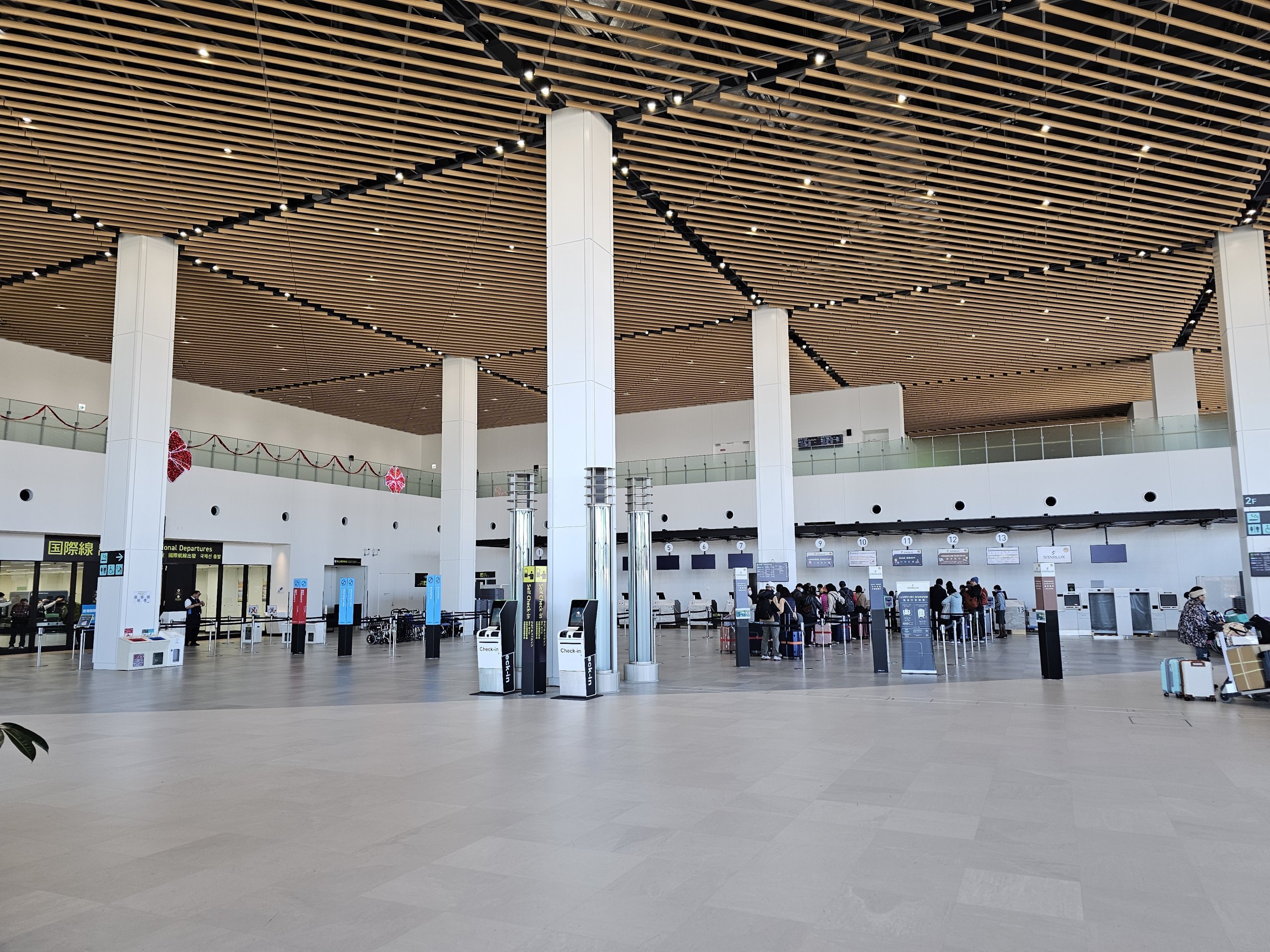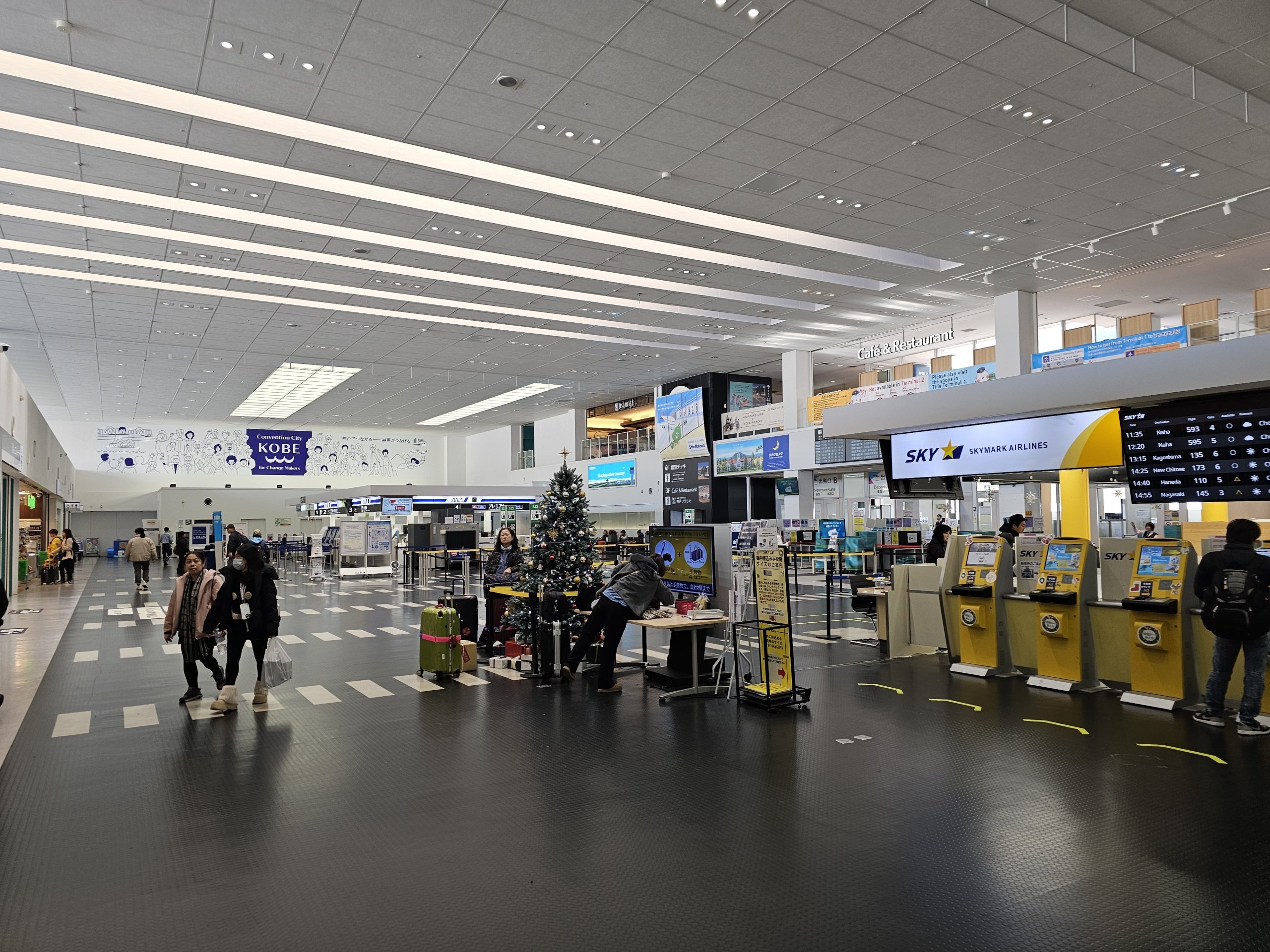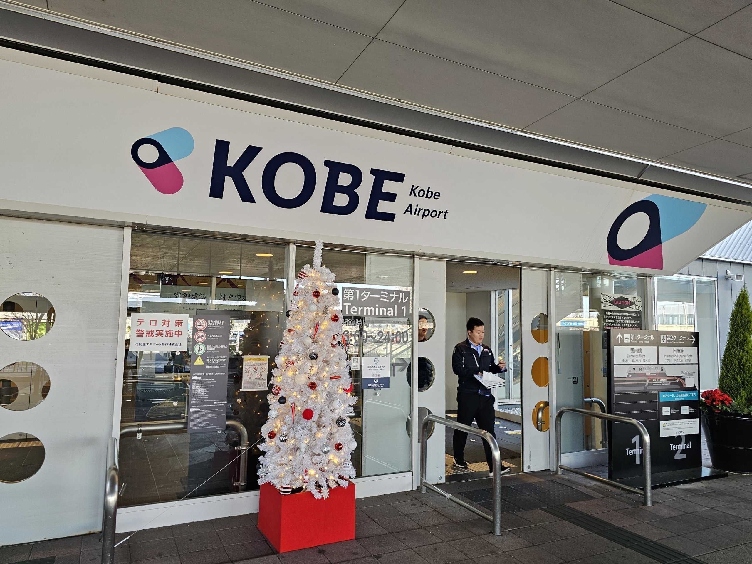 На летище Кобе има 2 малки, добре организирани терминала в отделни сгради на около 400 метра.