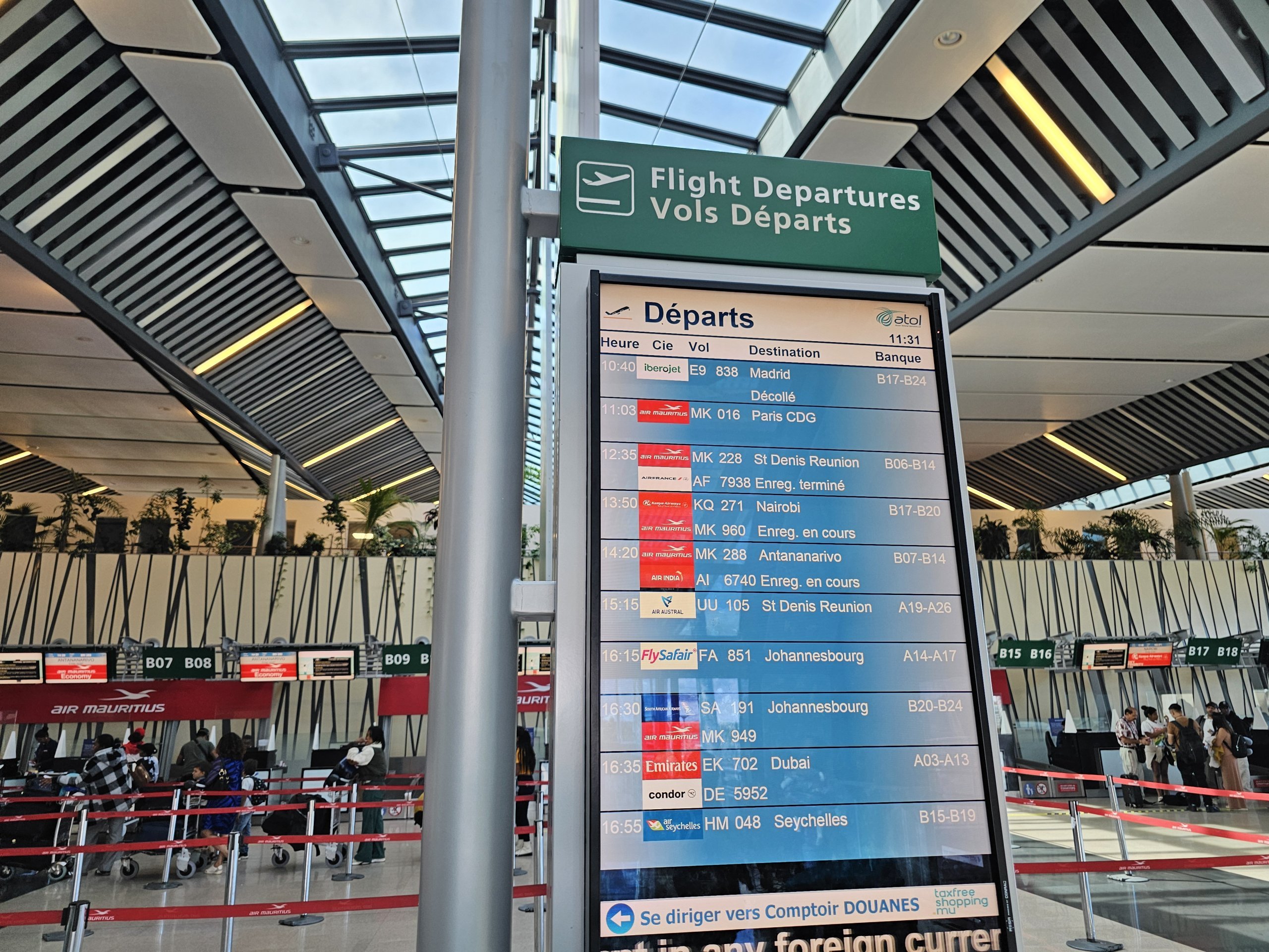 Пристигания и заминавания на летище Мавриций Seewoosagur Ramgoolam