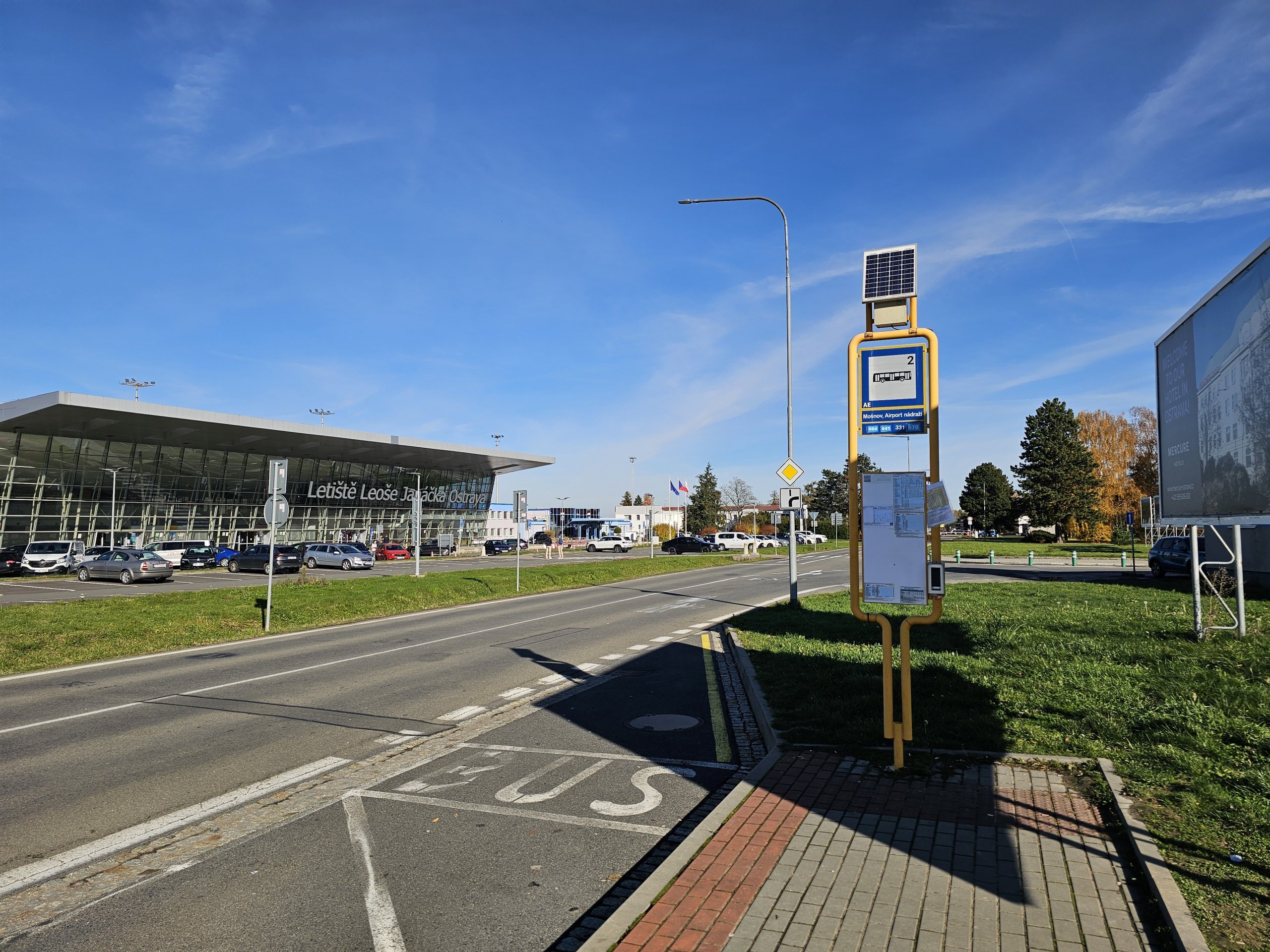 - Линия AE – Airport Express - пътува до центъра на града (спирка Hornopolní) и до централната автогара. Спира също така в квартал Дубина или на градския стадион.