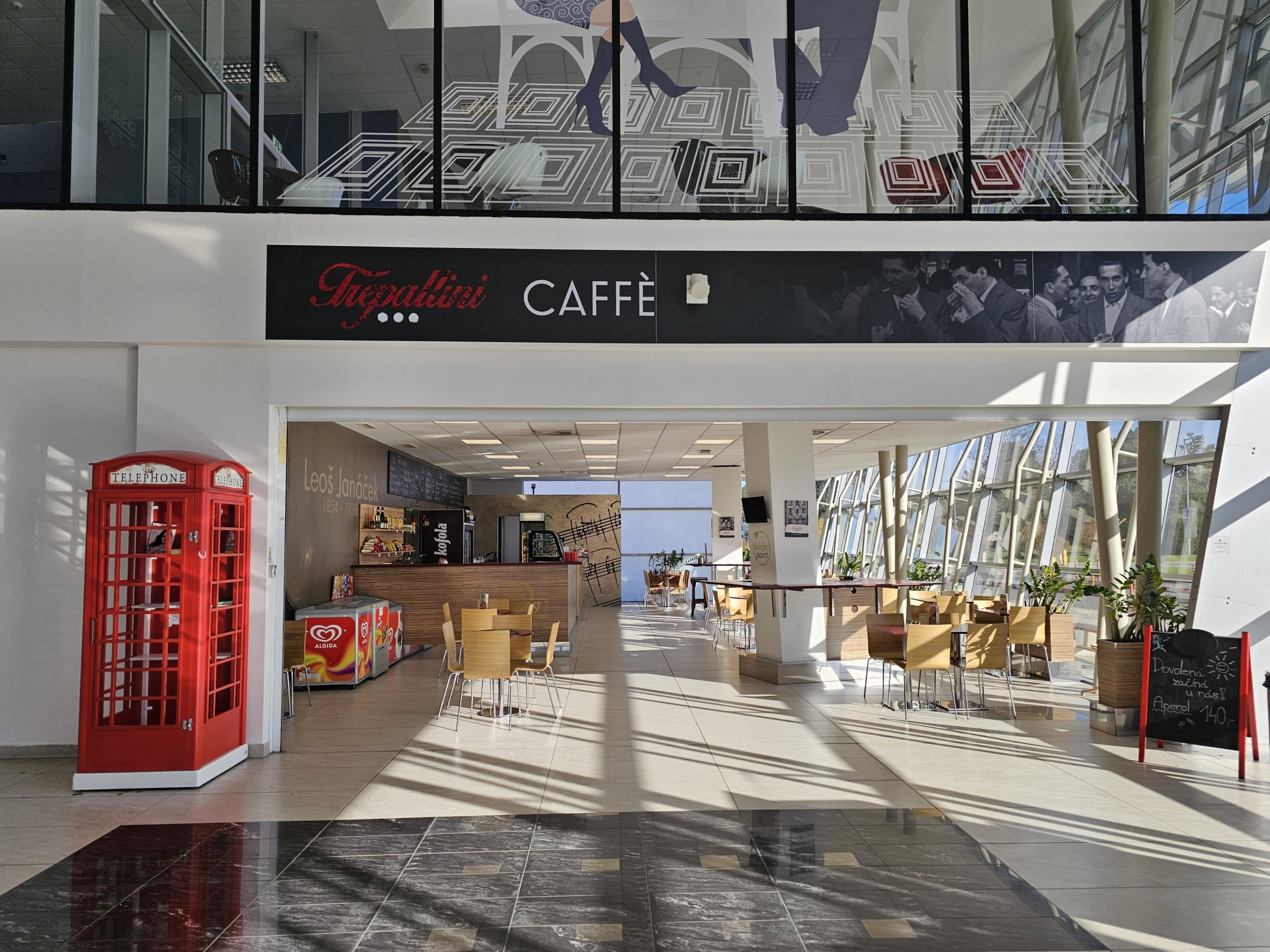 В обществената зона на летището се намира кафене Fragollini, което предлага багети, сандвичи или напитки.