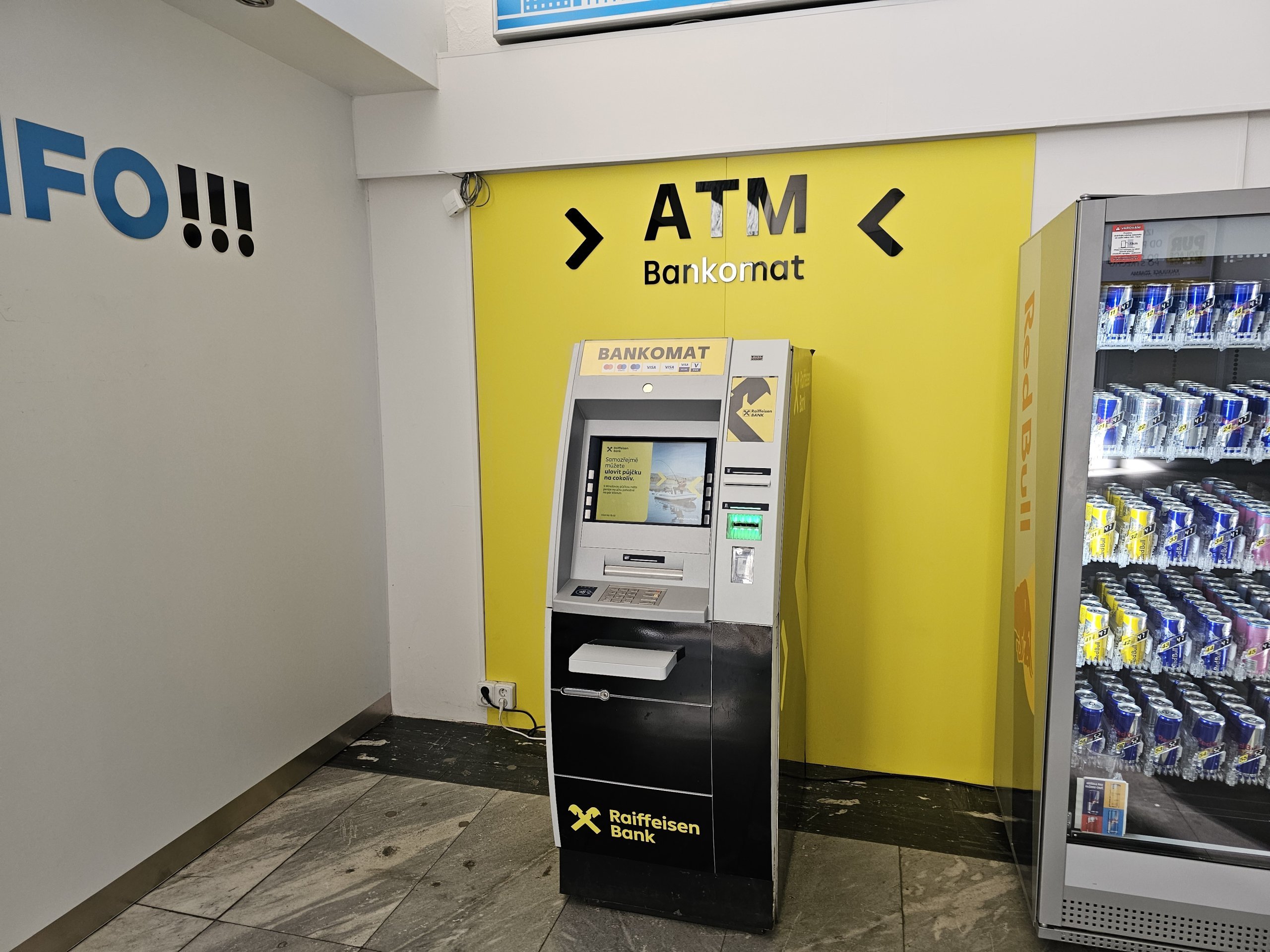 Можете да използвате банкомата на Райфайзенбанк в обществената зона на залата за пристигащи.
