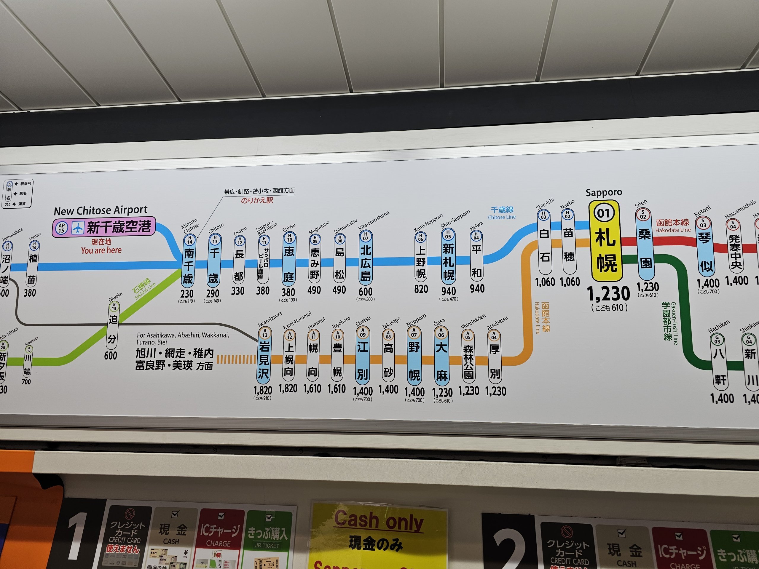 Алтернативно, всички японски IC карти могат да се използват за плащане на билети - ако имате такава от други пътувания до Япония, не е нужно да се притеснявате за нищо, просто я прикрепете към турникета. Ако искате да си купите карта Китака, отново е необходимо да имате само пари в брой.