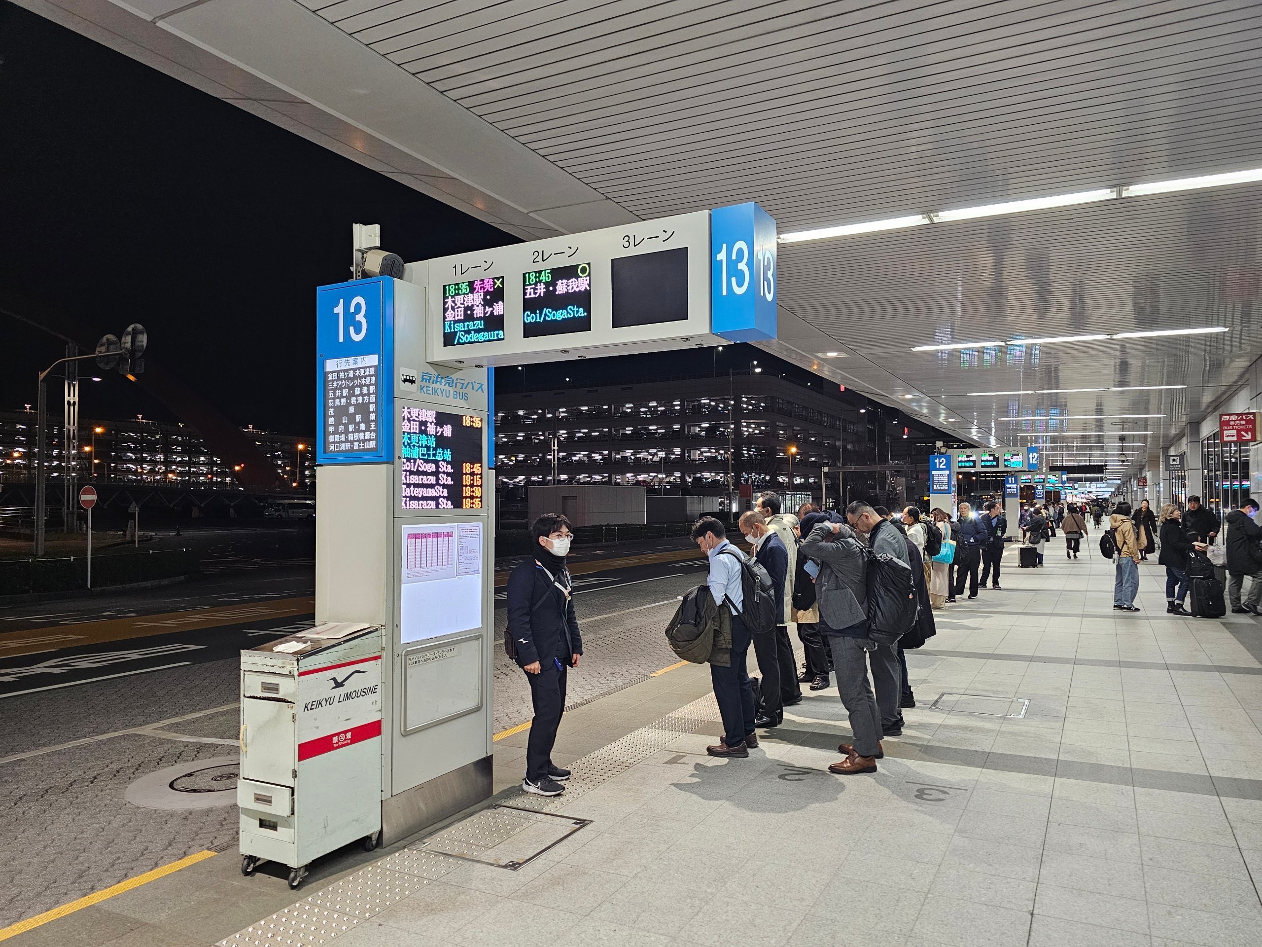 - Последен влак от летището - 23:48 ч. до гара Шинагава; 0:10 ч. до гара Кейкю-Камата (от Терминал 3 заминава винаги с 2 минути по-късно)