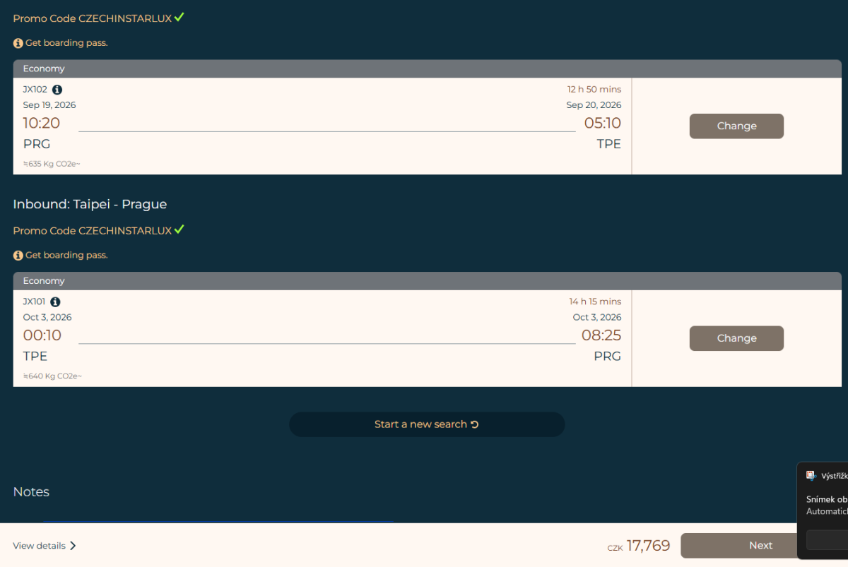 С промоционалния код CZECHINSTARLUX ще получите 5% отстъпка от цената на билетите, благодарение на което двупосочните билети могат да бъдат закупени на цена от 734 евро.