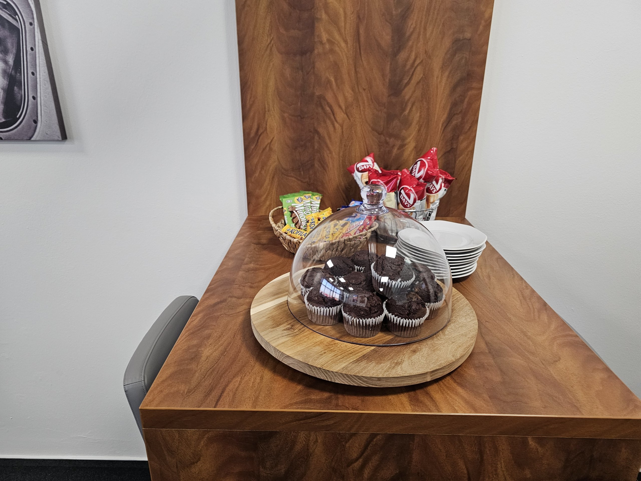 Освен това на практика всичко е нездравословна храна - пакетирани сладкиши (кроасани и бисквити 7 Days) и мъфини.