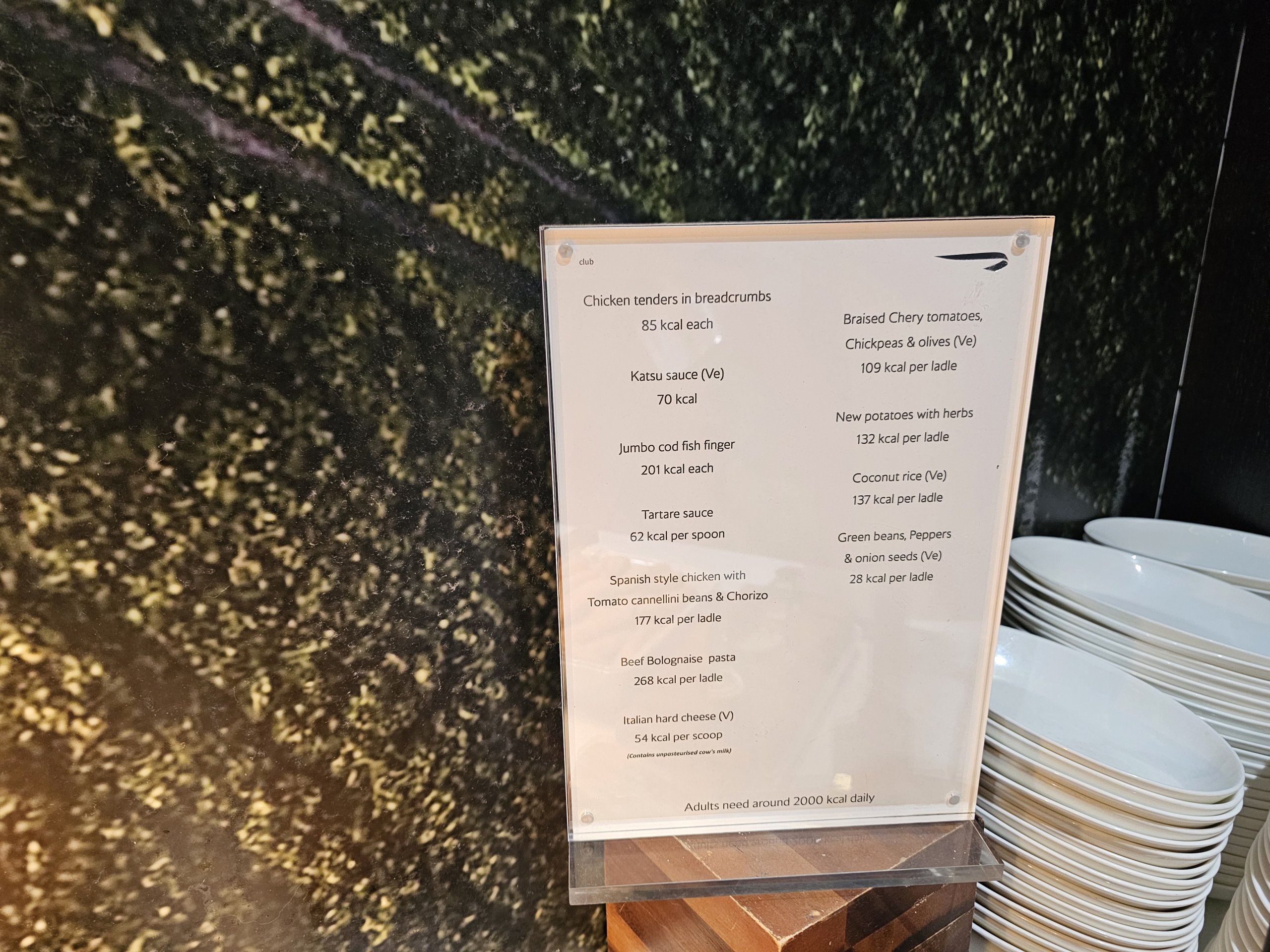 Положително е, че има табела с калорийното съдържание на всички предлагани храни.