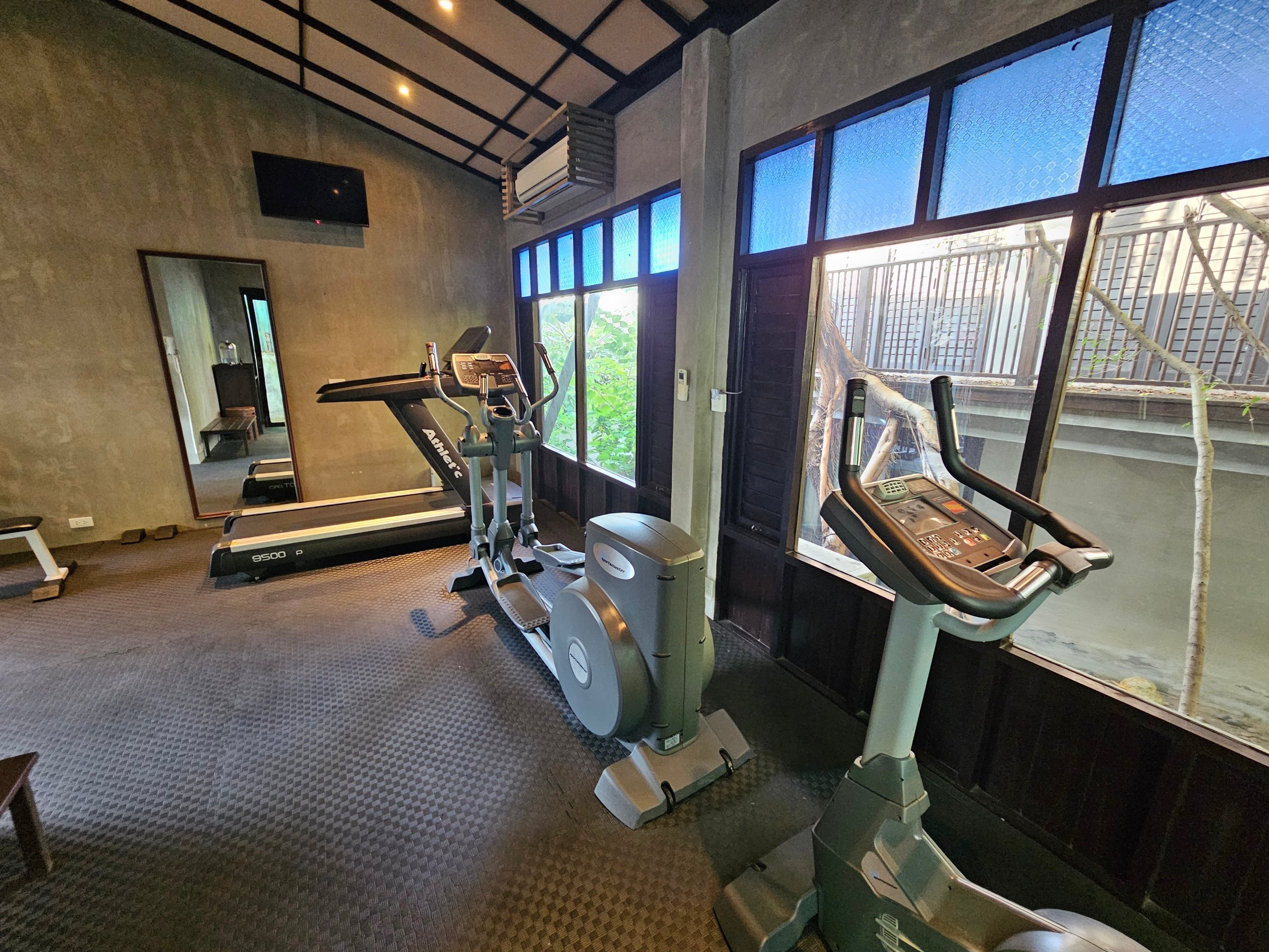 В горната част на хотела, близо до рецепцията, ще намерите и много малка фитнес зала с доста стари уреди. Въпреки това, тъй като често не можете да тичате по плажа поради прилива, фитнес залата на хотела може да бъде единствената възможност да тренирате в някои части на деня.