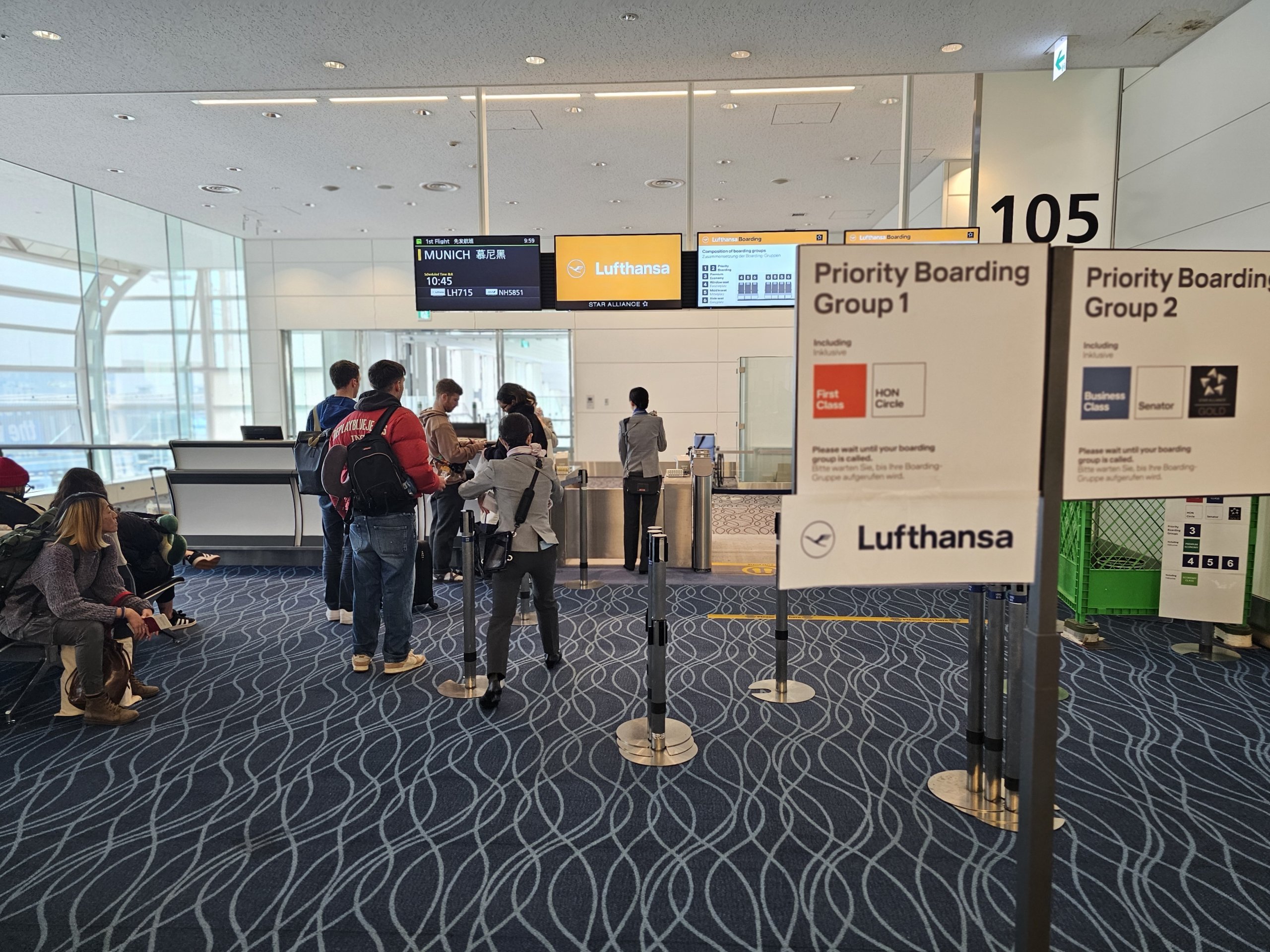 Тъй като имам два големи куфара, трябва да отида на гишето за регистрация. За съжаление Lufthansa не разполага с автоматични гишета на летище Ханеда, така че трябва да изчакам да започне времето за регистрация.