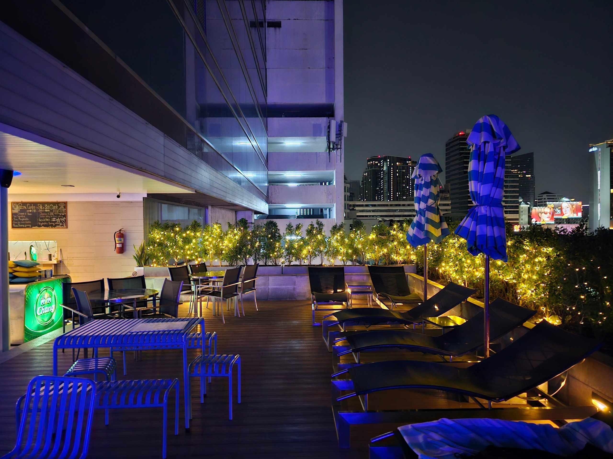 Това е бар на покрива с голяма открита тераса и красива гледка към хоризонта на града.