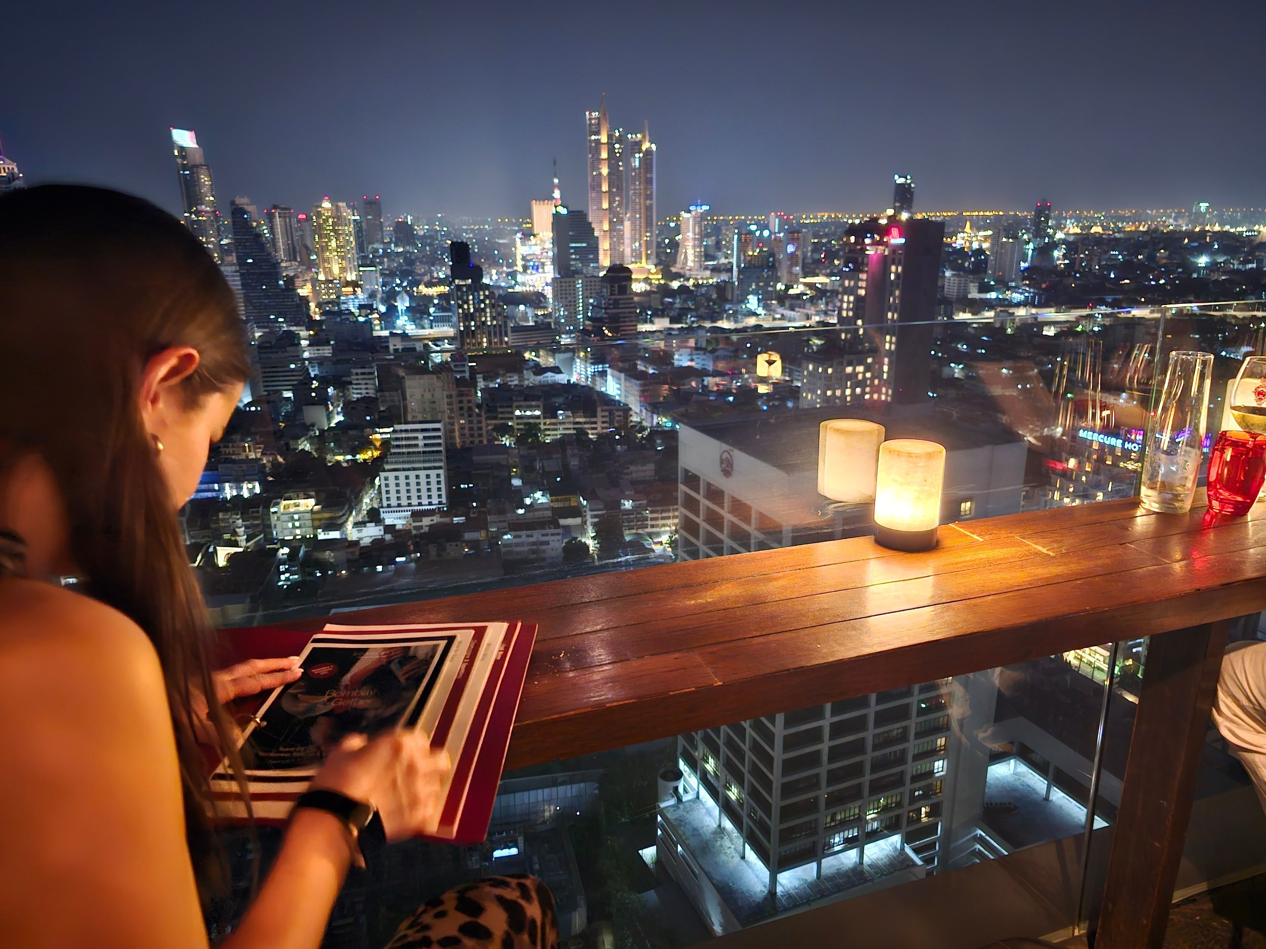 Атмосферата е малко по-различна от емблематичните барове на покрива в Банкок - тя е по-малко туристическа и по-спокойна.