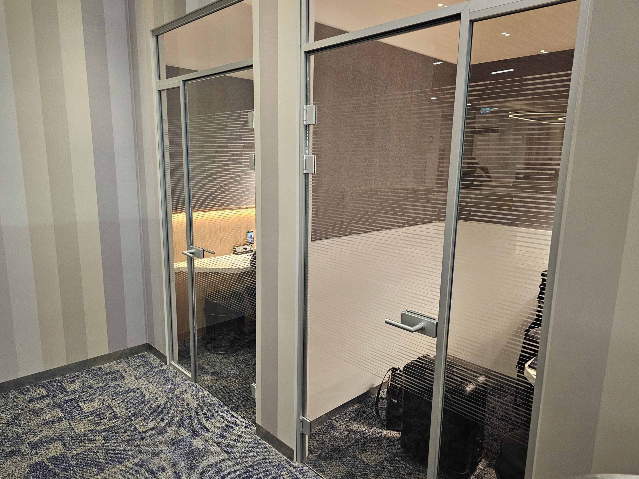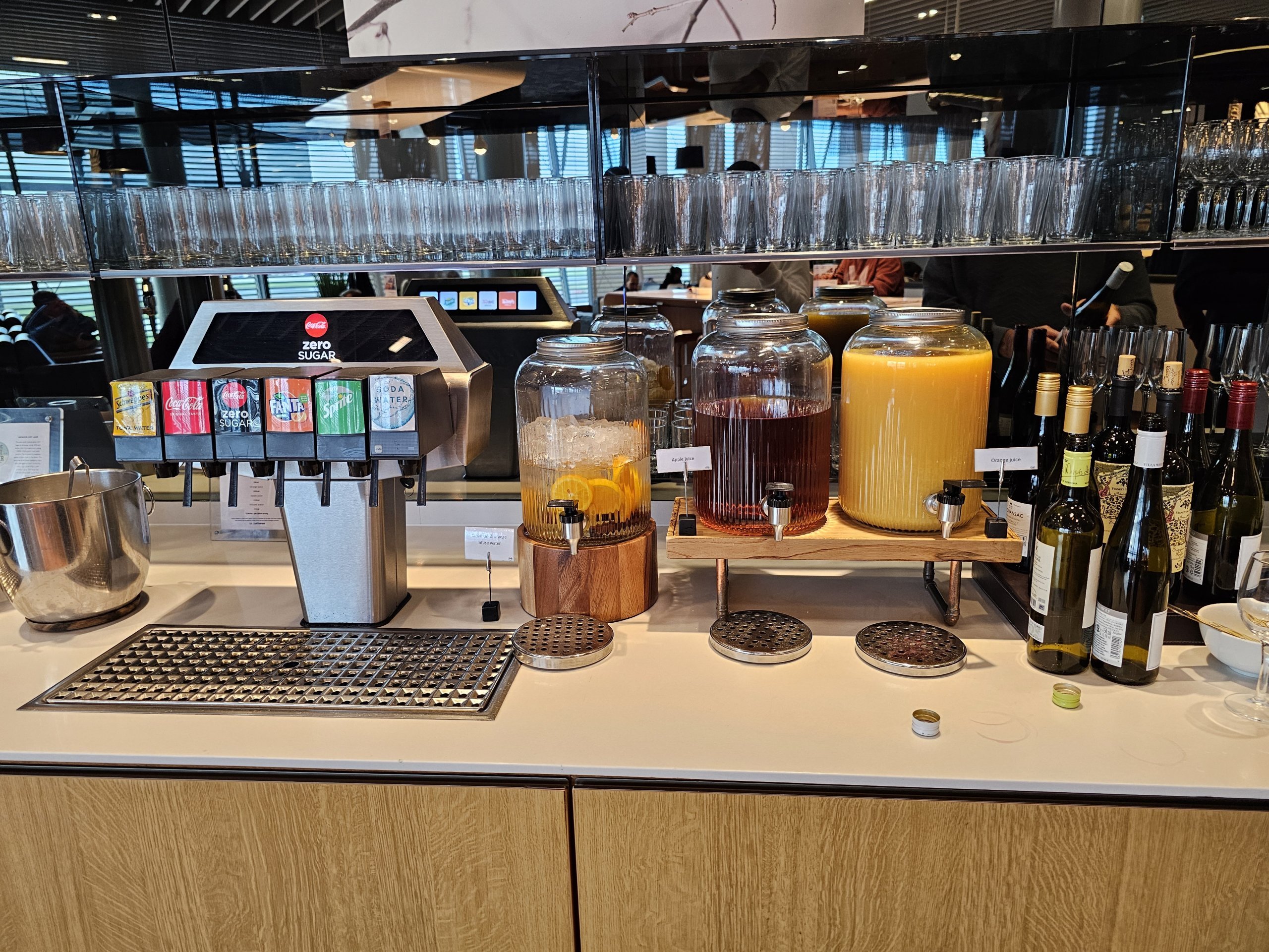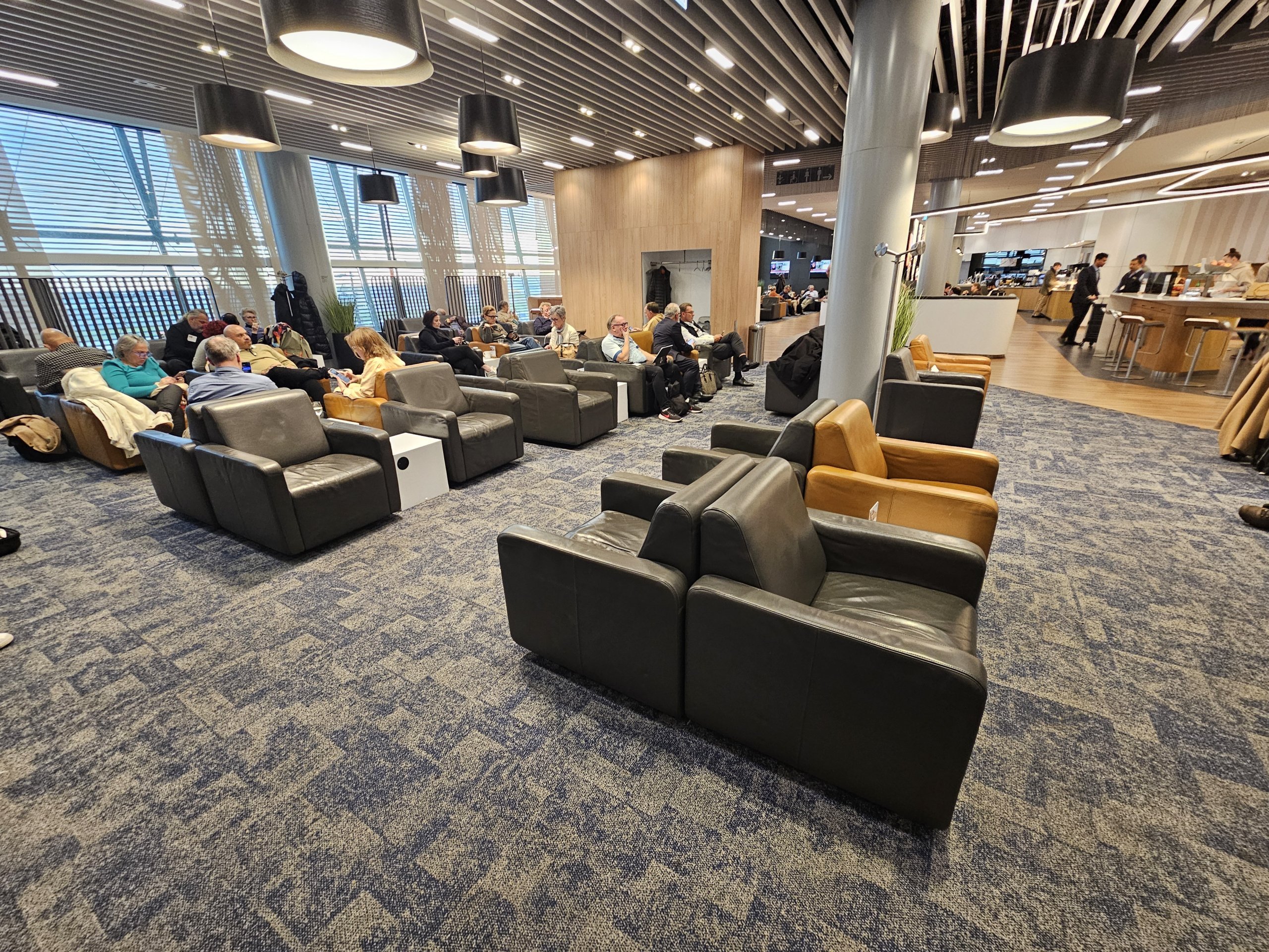 Като цяло салонът е просторен и светъл и има гледка към асфалта на летището, въпреки че тя е до голяма степен закрита от големи щори, които предпазват от слънцето.