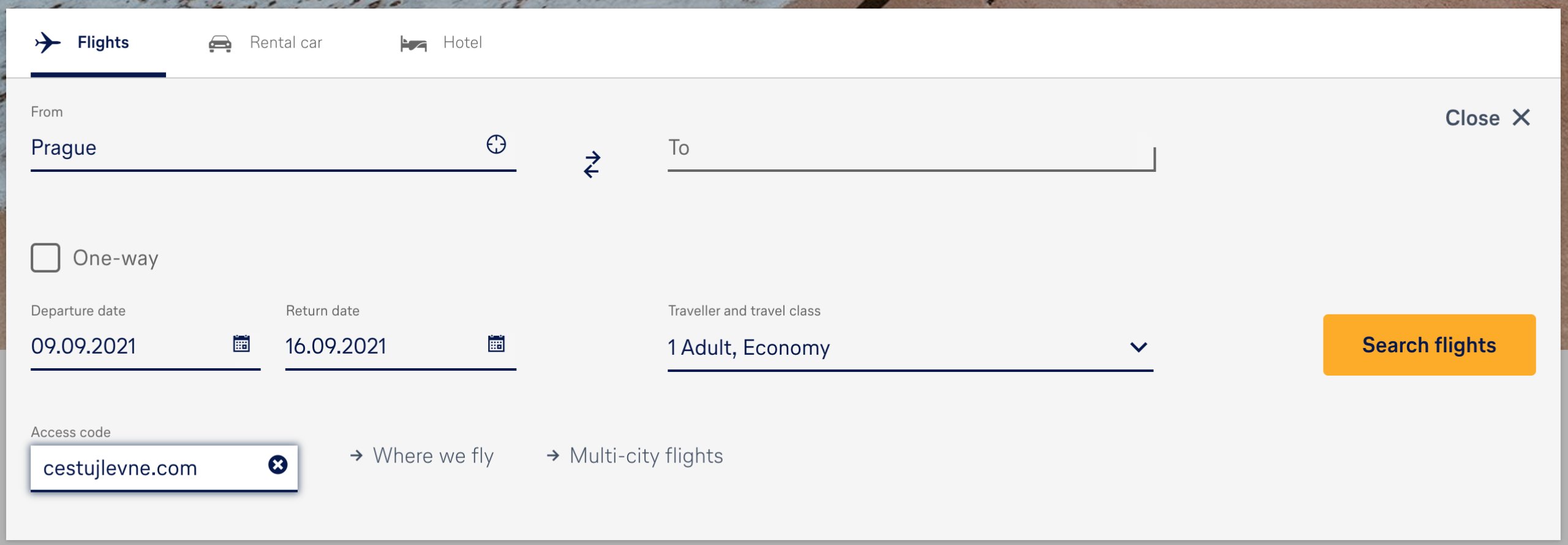 Използването на отстъпката в lufthansa.com е лесно и се извършва директно в търсачката за полети. Преди да потърсите полети до вашата дестинация, попълнете едно текстово поле в търсачката, в което се въвежда промо кодът.