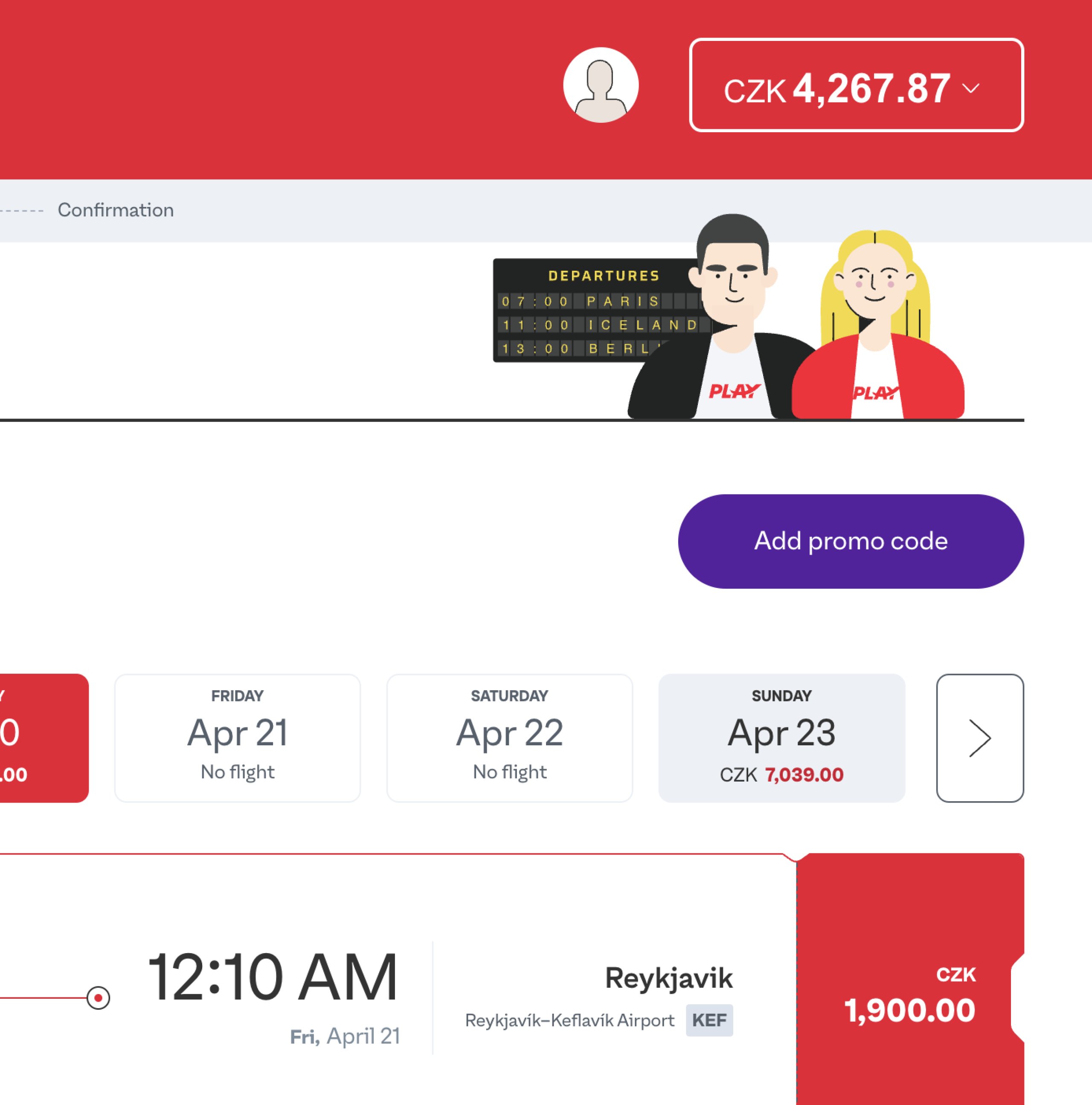Имате ли валиден и актуален промо код за Play Airlines и не знаете къде да го въведете? Първо, потърсете полети, изберете конкретни дати от календара и продължете към подробното разписание на полетите.